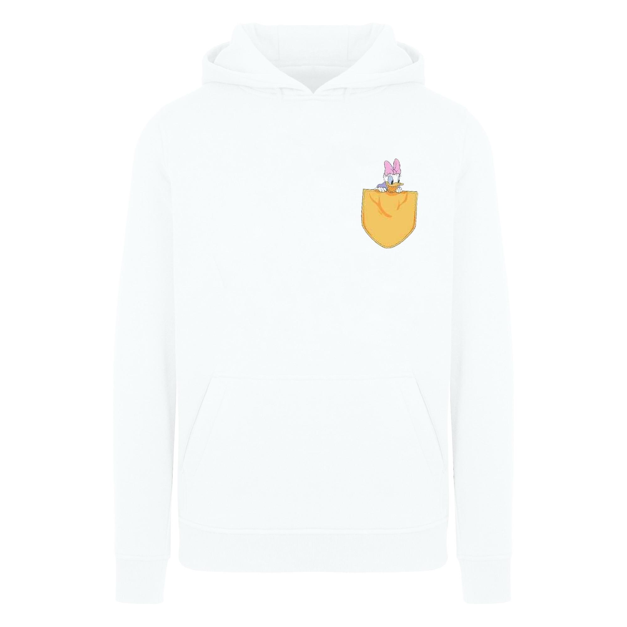 Ce sweat à capuche présente un design ludique avec Daisy Duck qui apparaît d'une poche imprimée. C'est un choix confortable et élégant pour les tenues décontractées, offrant une coupe décontractée et un toucher doux.