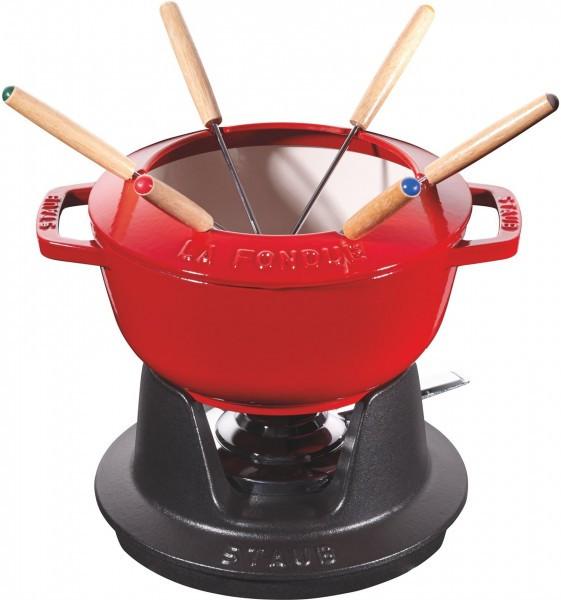 staub, Fondue Set kirschrot m. 2 Griffen, rund. 18 cm
