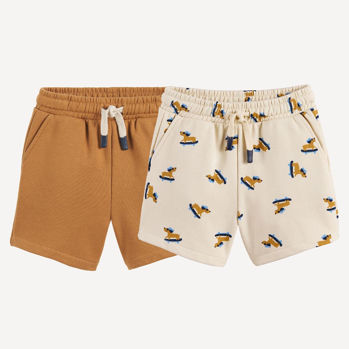 • Motif imprimé chiens sur 1 short + 1 short uni