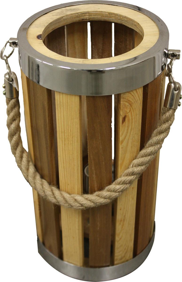 Lampe en bois de pin avec détails chromés et cordelette. Disponible en différentes tailles.