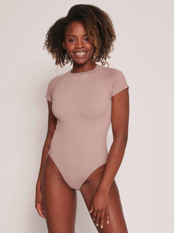 Ce body à manches courtes offre une coupe confortable et flatteuse. Le matériau innovant contient de minuscules capsules d'aloe vera qui sont progressivement libérées sur la peau, procurant un confort durable et un effet nourrissant.
