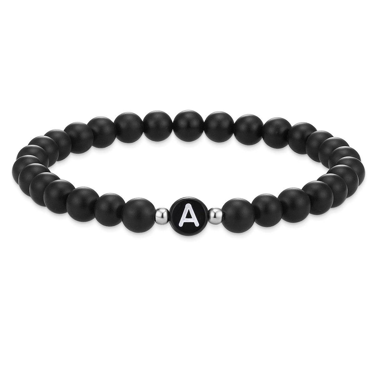 Amis pour toujours: Donnez-vous et de votre mieux avec ce bracelet de partenaire branché de Soul Club. Sa coloration monochrome avec des perles d'agate givrées s'intègre parfaitement au style d'athlexure momentanément à la mode. Le clou sur cette pièce unisexe est la lettre perle au centre, qui est effectivement mise en scène par des perles rondes argentées des deux côtés. Et ainsi jouer facilement, comme il s'agit de la bande-brière, est aussi la personnalisation. Déterminez simplement la lettre initiale de votre propre nom et des gens du cœur et choisissez les bracelets appropriés. Fait sont les bijoux, ce qui souligne de manière significative votre connexion!
