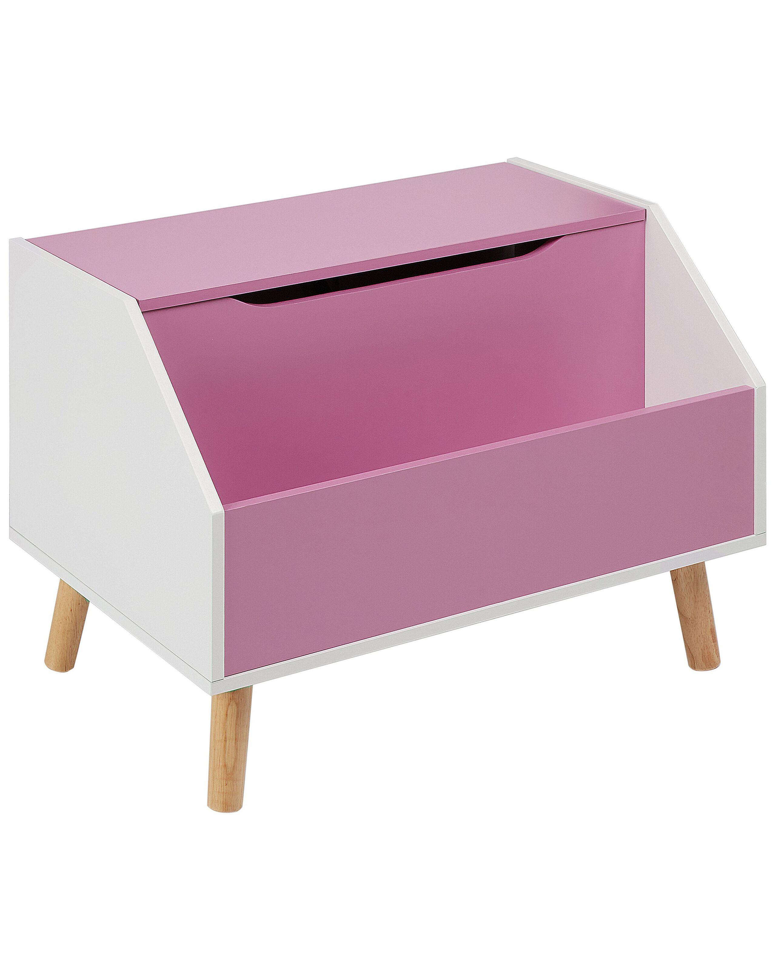 Boîte de rangement pour jouets. Organisez les jouets de vos enfants grâce à cette boîte de rangement spacieuse. Fabriquée à partir de matériaux durables dans une couleur charmante et soutenue par des pieds en bois robustes, elle est dotée d'un couvercle sécurisé pour les enfants avec un espace de rangement caché et une étagère. Facile à entretenir, ce meuble de rangement s'intègre parfaitement dans les chambres d'enfants, quel que soit le style de décoration, et s'harmonise parfaitement avec les autres meubles.