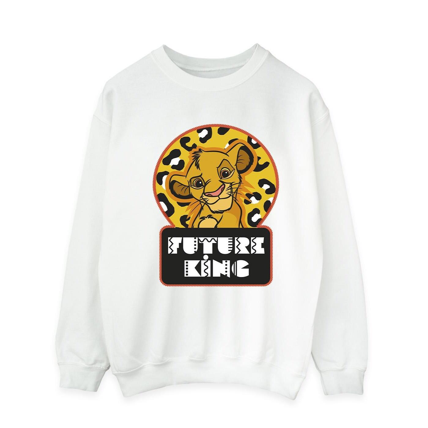 Ce sweatshirt présente un graphique ludique de Simba du Roi Lion de Disney, ce qui en fait un ajout charmant à toute garde-robe décontractée. Le design comprend un fond circulaire avec un motif léopard et une bannière rectangulaire sous Simba qui indique « FUTURE KING ».