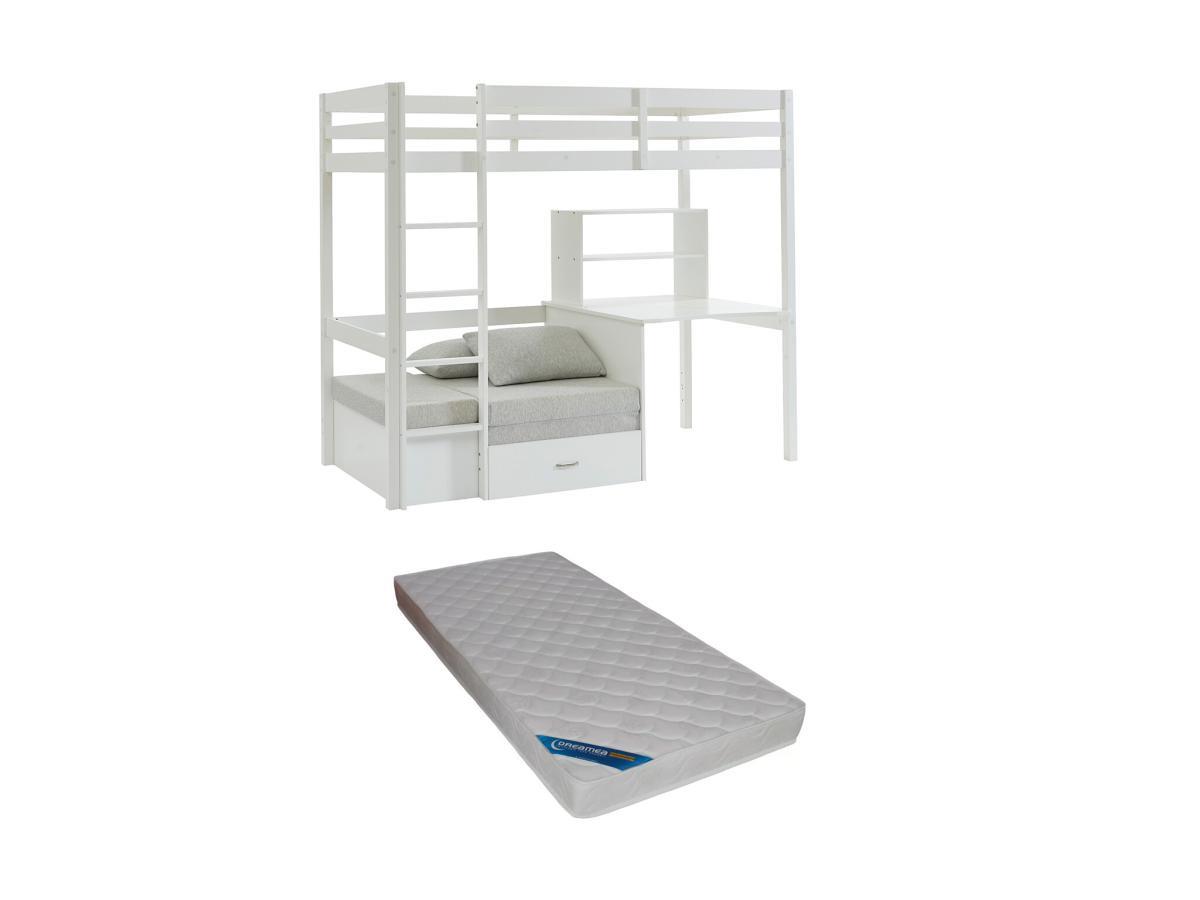 Vente-unique Lit mezzanine 90 x 200 cm avec bureau, sofa convertible et rangements - Pin massif - Blanchi + Matelas - GOLIATH III