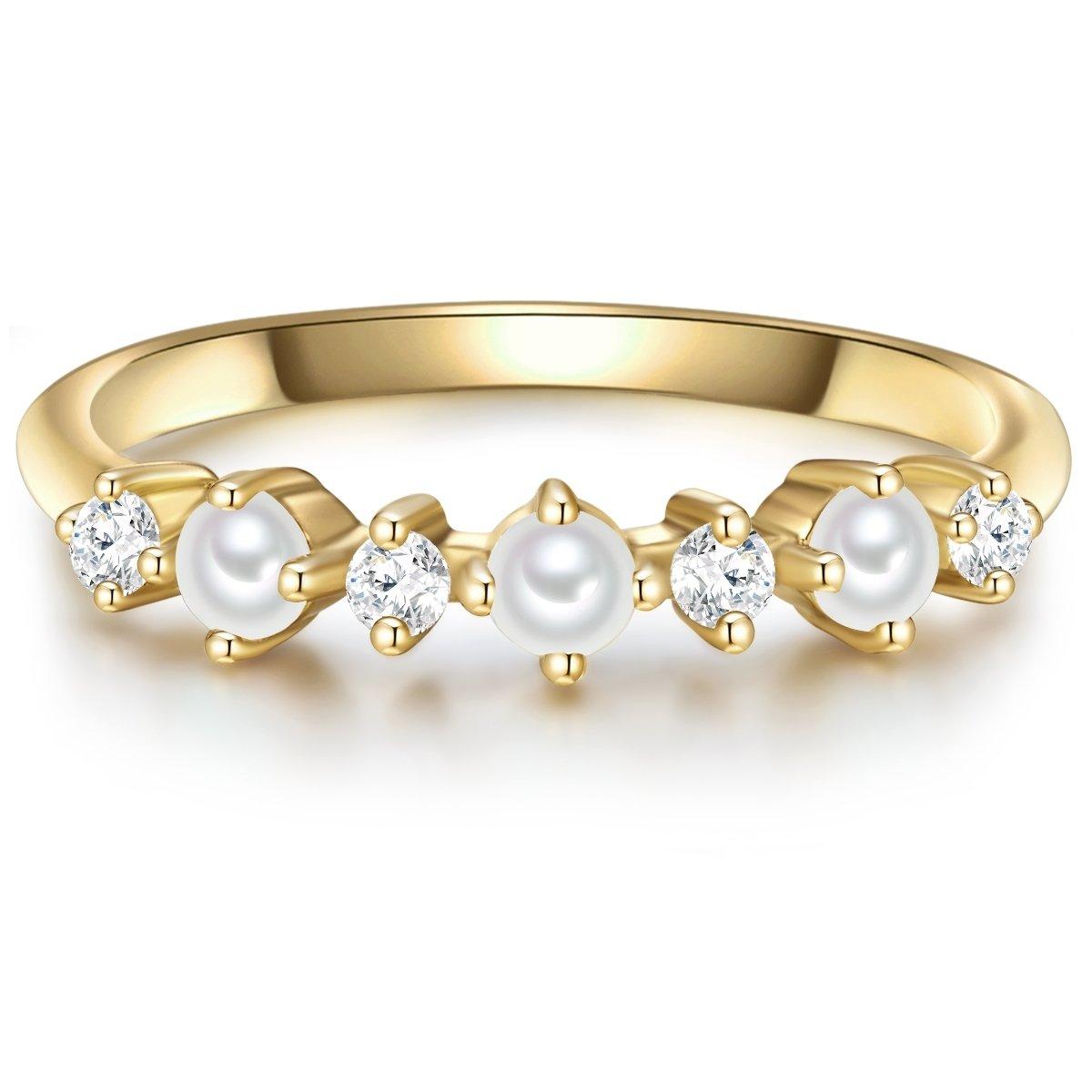 Aimez-vous les accessoires élégants que tout le monde n'a pas? Ensuite, cet anneau de perle de l'étiquette met en évidence Munich ne devrait pas manquer dans votre collection de bijoux! Le noble mélange de matériaux dans le style vintage inspire avec un rail à cycle en filigrane, qui est occupé avec trois bouton-bouton et scintillant doucement en train de reproduire d'eau douce et quatre cristaux de zircone scintillant. Le rail et les versions anneaux sont fabriqués de 925 argent sterling et raffinés avec de l'or jaune intemporel. Le bijou spécial dégage des vibrations glamour-féminines et correspond bien à la tenue commerciale ainsi qu'avec un look de loisir.