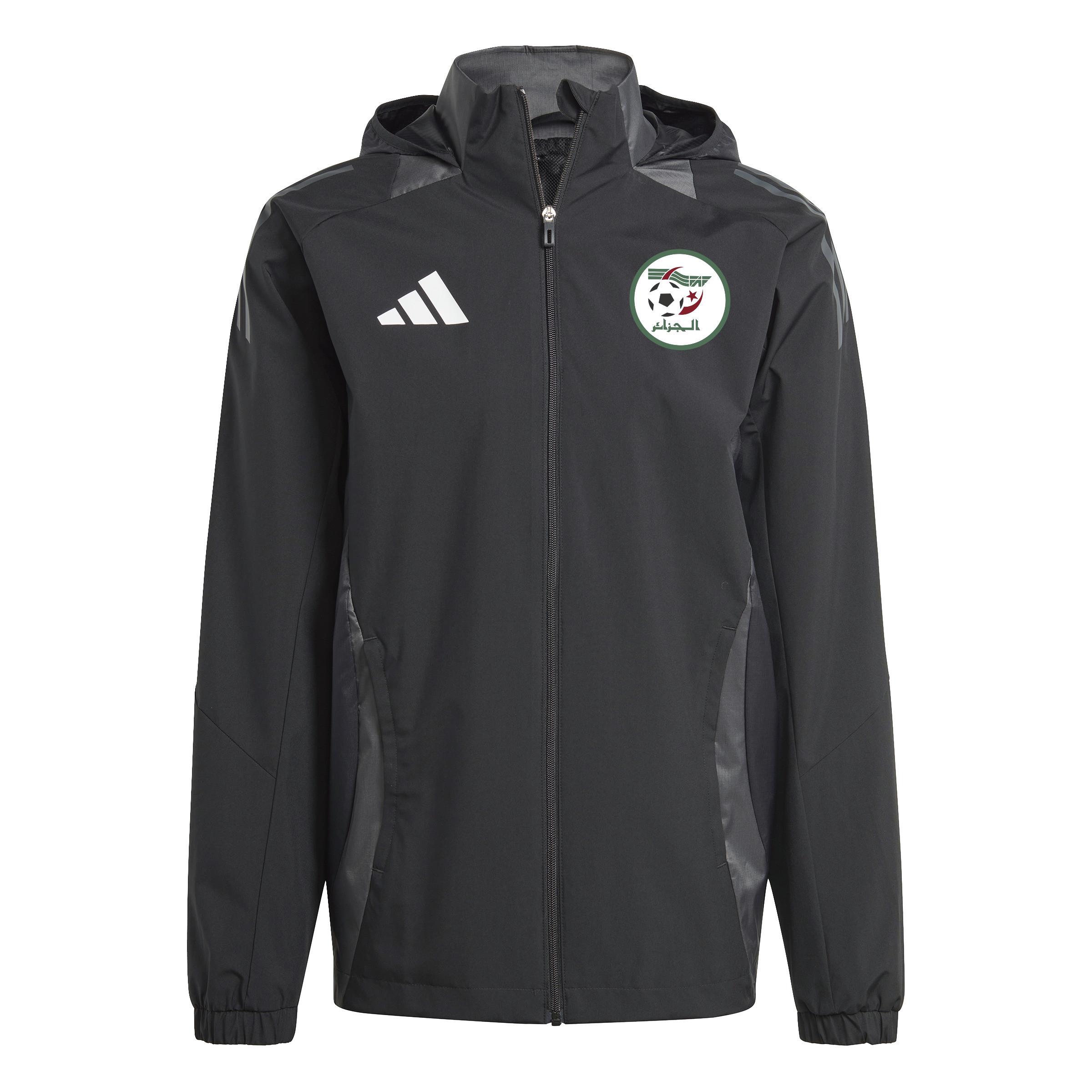 Ne laisse pas les éléments t'empêcher de t'entraîner. Cette veste adidas légère est parfaite pour affronter toutes les conditions climatiques, y compris les averses légères. Doublée en mesh pour plus de confort sur le terrain, elle possède une capuche qui t'offre une protection supplémentaire quand tu en as besoin. Un blason de l'Algérie sur la poitrine affiche ta passion pour l'équipe.