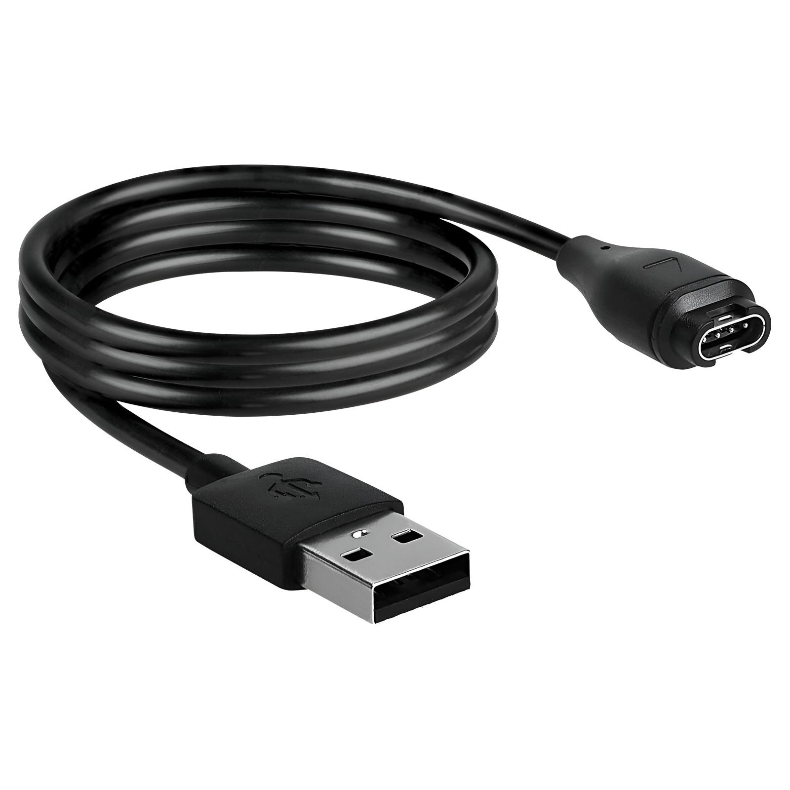 Chargeur pour montre connectée Garmin. Câble USB avec cordon en silicone résistant. Conception anti-nœuds et solide face aux usures. 1m de long assurant une utilisation optimale. Universel, il est adapté à toutes les sources d'alimentation USB.