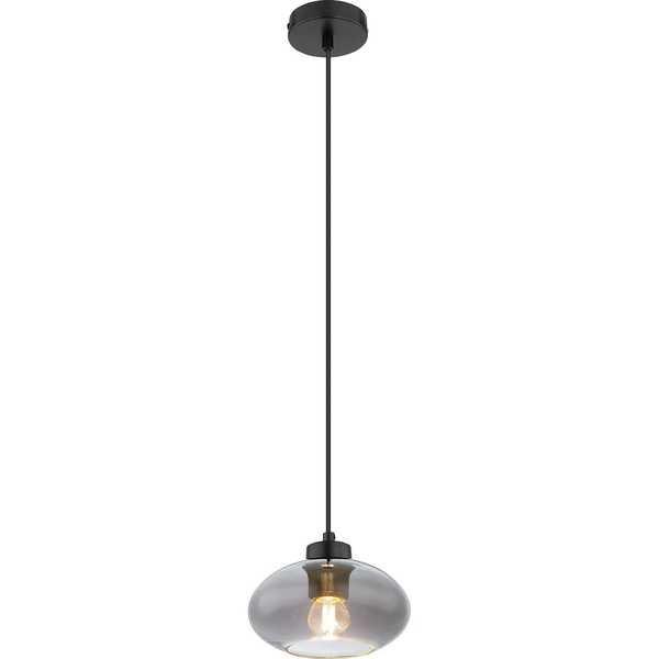 Suspension métal noir mat, verre fumé, câble PVC noir, hauteur pouvant être raccourcie, : 180mm, H: 1200mm, exclu 1x E27 40W 230V.