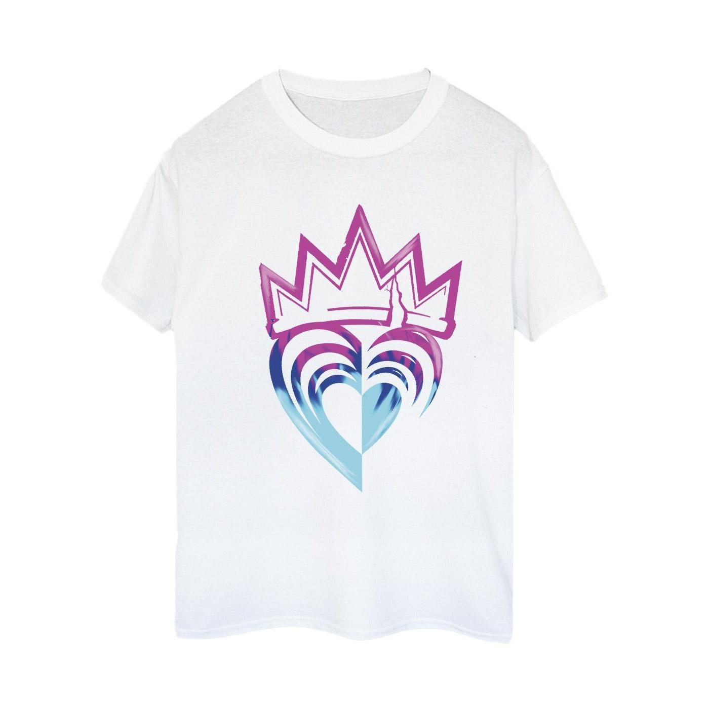 Ce T-shirt avec un imprimé graphique vibrant inspiré de Descendants est un ajout élégant à toute garde-robe décontractée. Le design présente une couronne sur un cœur, divisé par des couleurs contrastées, ajoutant une touche unique au T-shirt classique.
