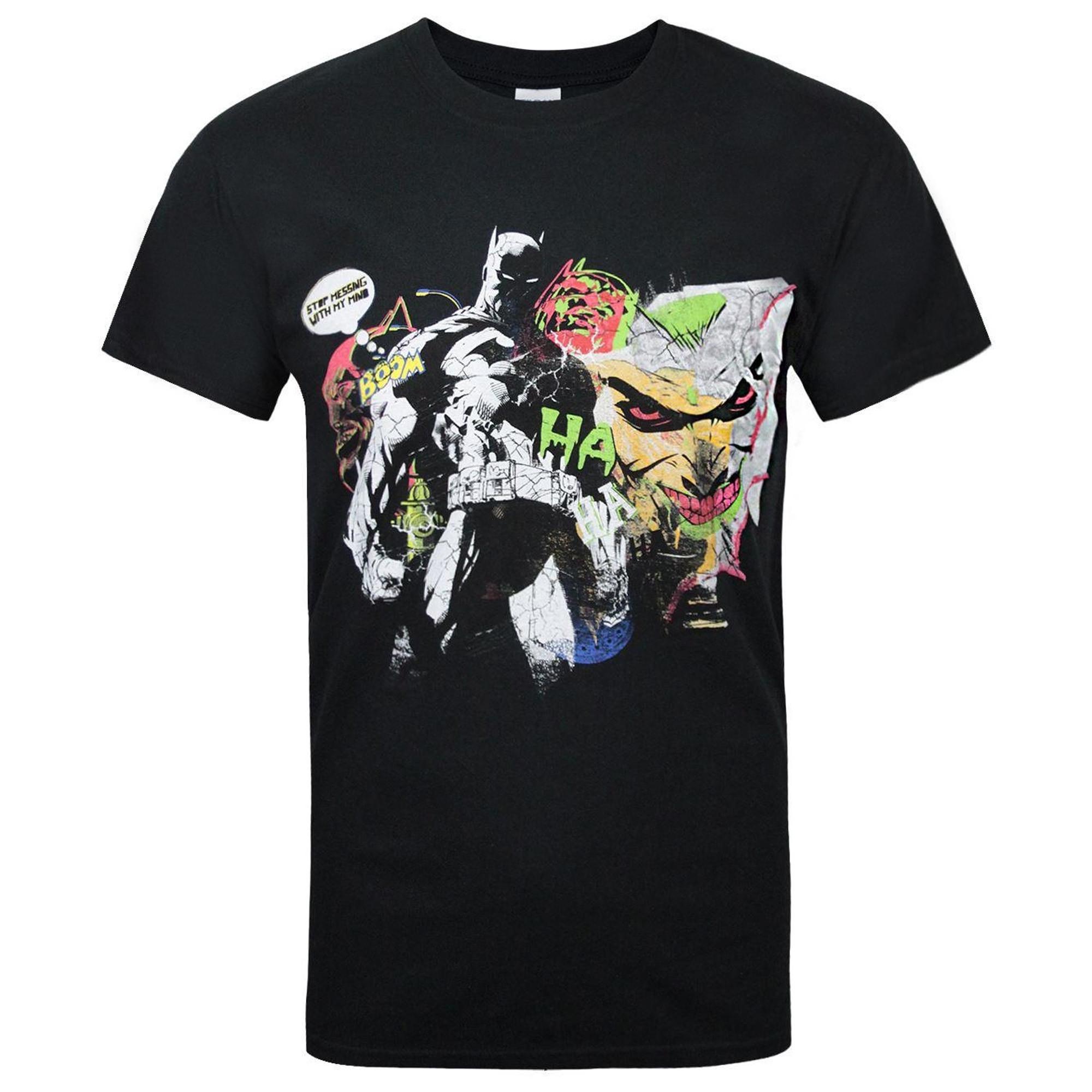 Ce T-shirt sous licence officielle présente un imprimé graphique saisissant de Batman et du Joker, réalisé dans un style graffiti dynamique. Le design capture la rivalité emblématique avec des couleurs vives et des images audacieuses, en faisant une pièce remarquable pour les fans.