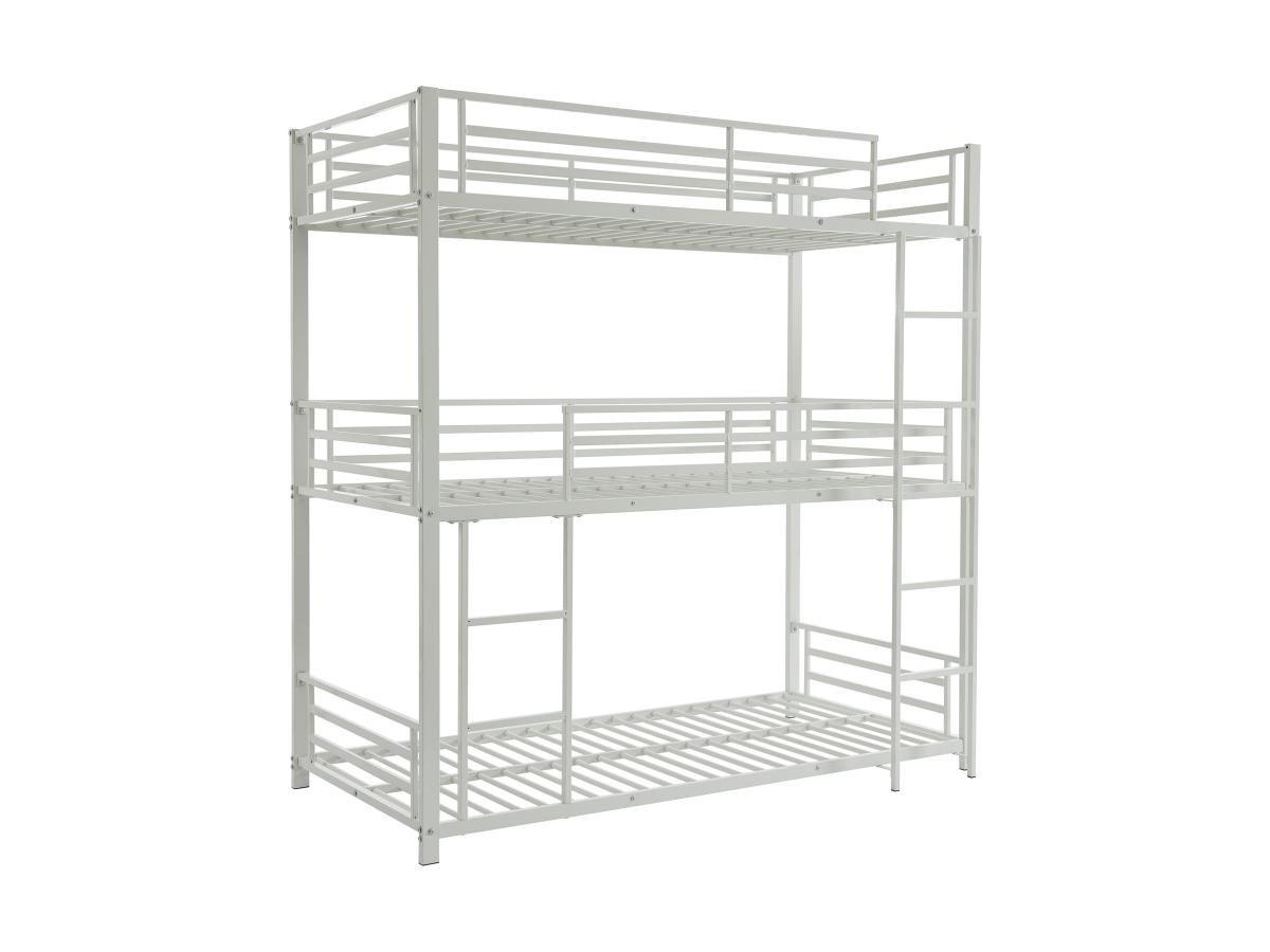 Vente-unique, Lits superposés triple 3 x 90 x 190 cm - Métal - Blanc - ELOUAN III