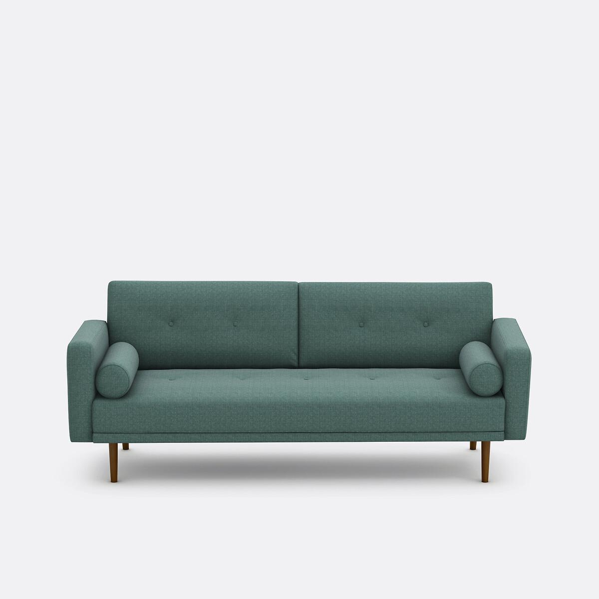 Canapé convertible type clic-clac 3 places Tuske. Un petit clin doeil aux années 60 mais avec tout ce quil faut de modernité.