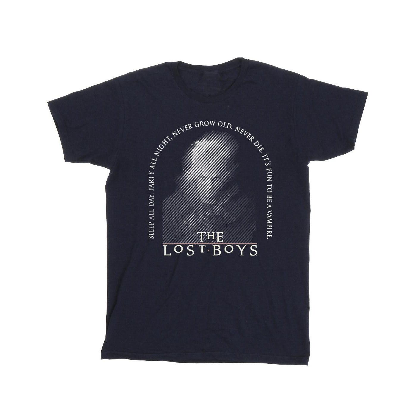 Ce T-shirt présente un imprimé graphique inspiré du film "The Lost Boys", mettant en vedette un portrait de David avec un motif d'éclaboussures. Il est conçu pour le confort et le style, ce qui en fait un ajout polyvalent à toute garde-robe décontractée.