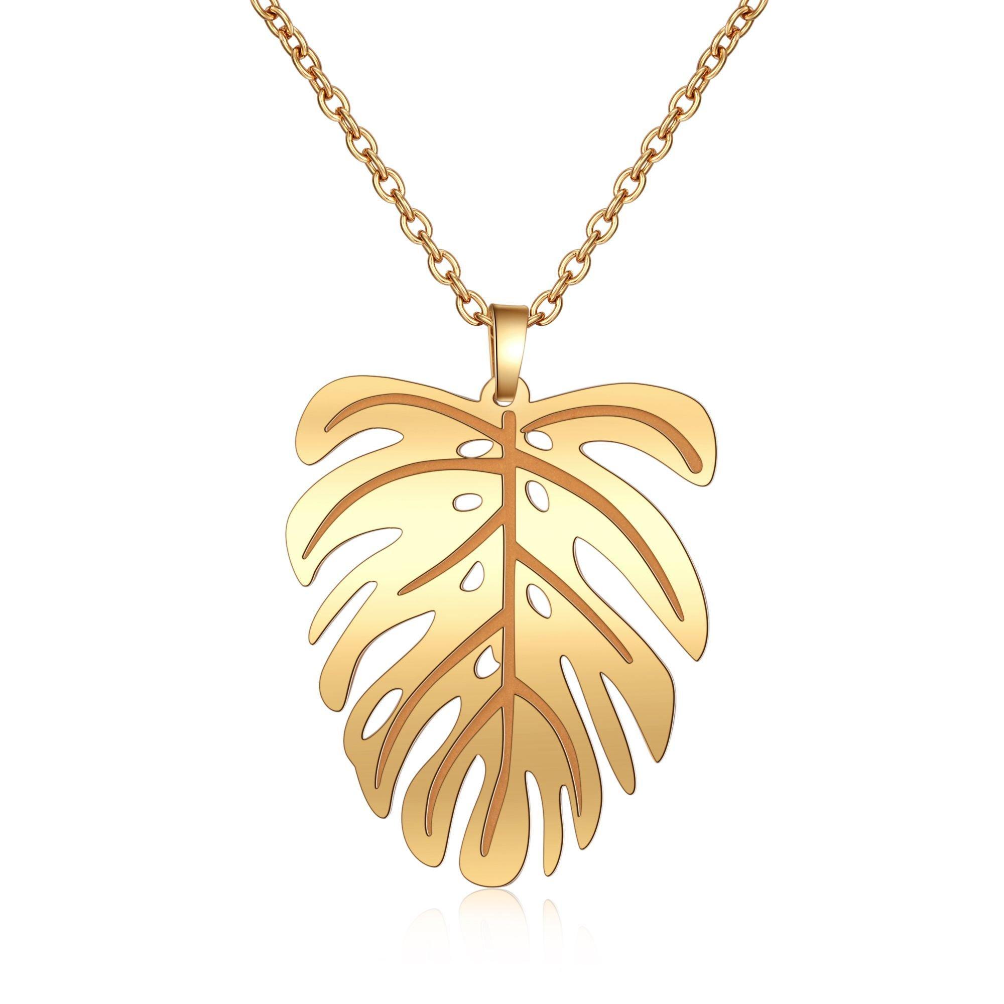 Ce collier en acier inoxydable avec une feuille de palmier en pendentif est l'accessoire à la mode!
