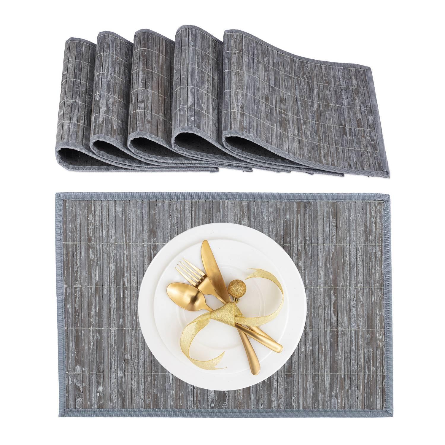 Protégez vos surfaces de salle à manger avec notre lot de 6 sets de table, conçus pour éviter les rayures et les taches tout en apportant une touche d'élégance. Fabriqués en bambou et polyester durables pour une utilisation durable.