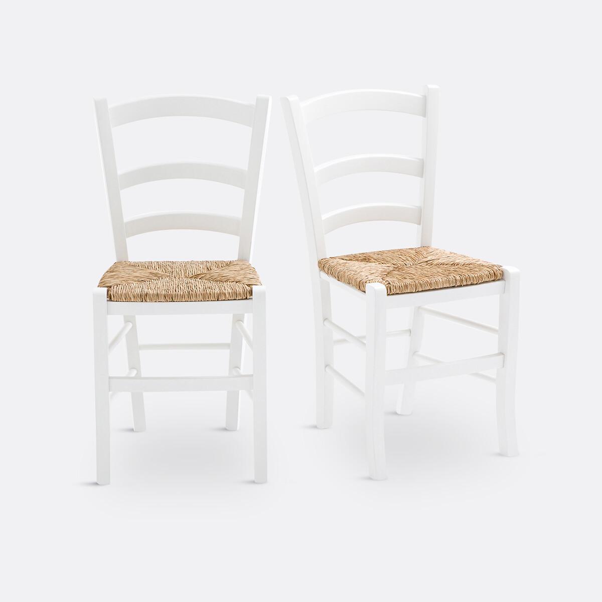 Les 2 chaises paysannes Perrine : une petite touche champêtre qui rafraîchit la déco... Un modèle extrêmement classique, toujours apprécié, revisité en laqué blanc ou en gris pour un côté très tendance.