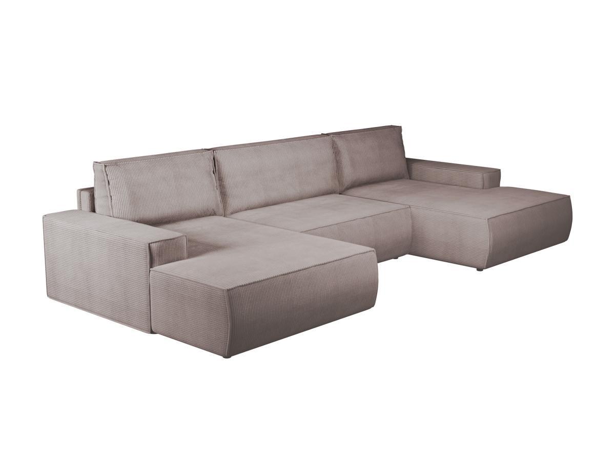 Vente-unique, Grand canapé d'angle panoramique convertible en velours côtelé violet clair AMELIA