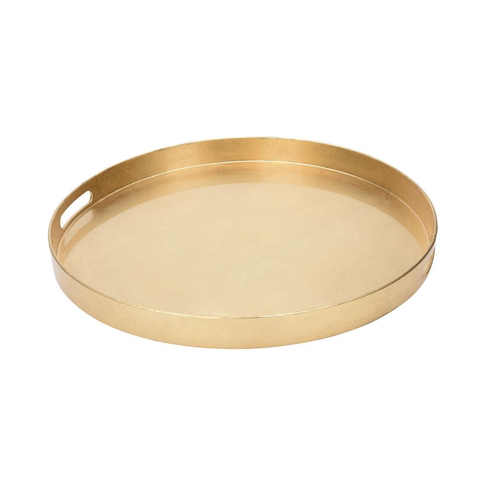 Informations sur le produit, couleur dorée brillante, dimensions : 460 x 460 x 40 mm, plateau rond, avec poignées pratiques, design élégant, utilisation polyvalente : plateau, décoration, etc.