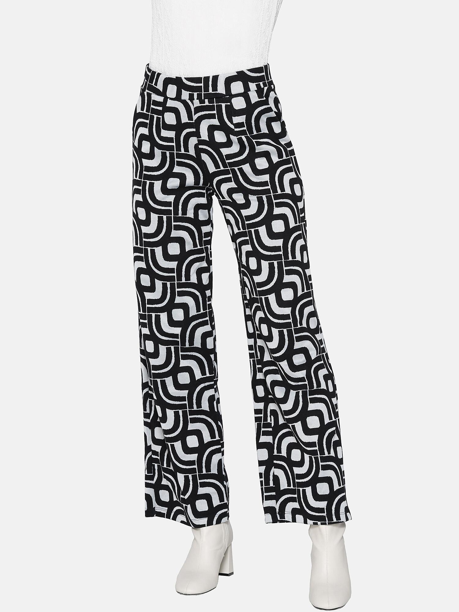 Ce pantalon évasé de Luna Splendida offre un design confortable et agréable, assurant un confort tout au long de la journée, quelle que soit la morphologie. Avec un style à la fois classique et tendance, ce pantalon se combine facilement avec différents hauts de la garde-robe, adapté aussi bien aux tenues de bureau sobres qu'aux tenues de tous les jours pour un look plus sophistiqué. La taille large et haute offre un confort maximal, et les poches latérales ajoutent de la praticité. Le tissu jacquard présente un motif géométrique, ajoutant une touche de fantaisie au look quotidien. Un logo Luna est présent sur le côté.