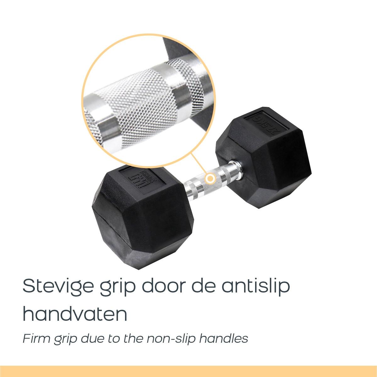 En vous entraînant avec des poids libres, vous pouvez renforcer efficacement tout votre corps. Grâce aux innombrables exercices, vous pouvez facilement entraîner tous les muscles de votre corps. L'aspect unique de cet haltère, à savoir les extrémités hexagonales, garantit que l'haltère ne roule pas pendant l'entraînement. De cette façon, vous pouvez utiliser les haltères hexagonaux en toute sécurité tout en effectuant des pompes.