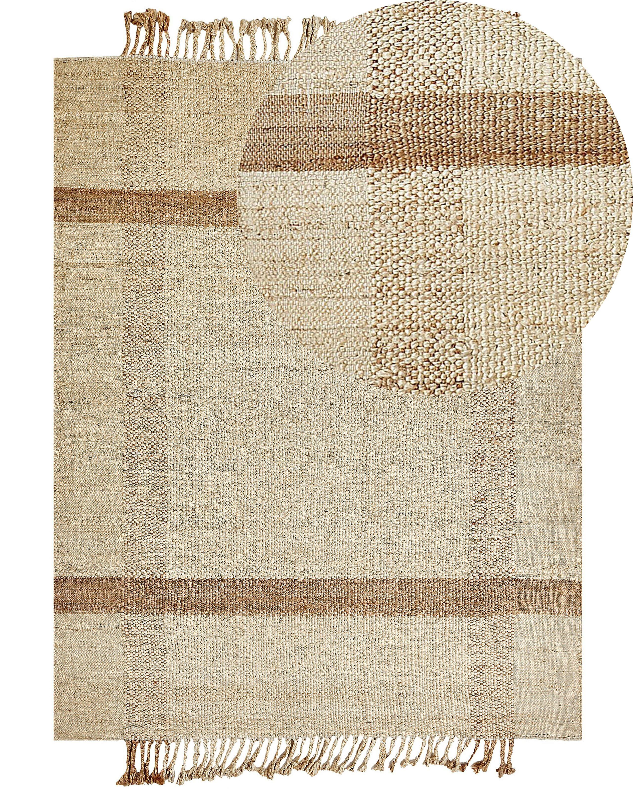 Tapis boho tissé à la main avec pompons. Cet élégant tapis rectangulaire sera le complément idéal de tout intérieur d'inspiration naturelle ou bohème. Fabriqué à la main en jute de haute qualité, il est extrêmement durable. Décoré de pompons et d'un motif géométrique, le tapis se marie bien avec des meubles et des accessoires en bois ou en rotin.