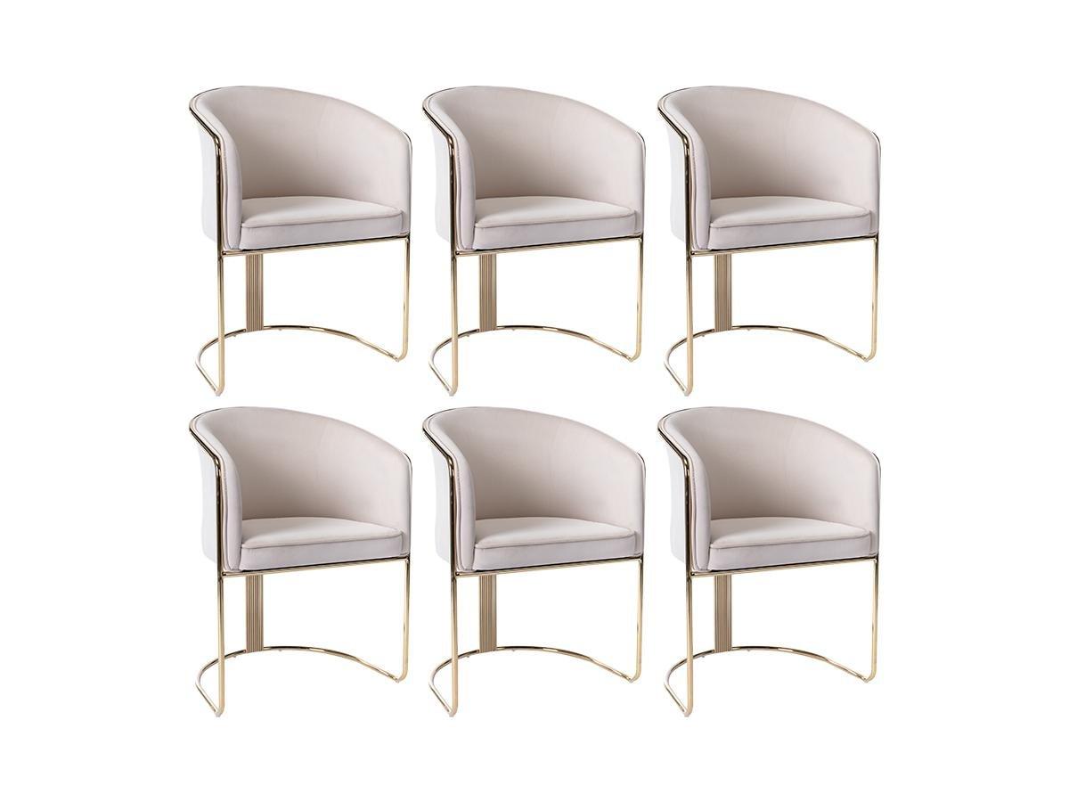 PASCAL MORABITO Lot de 6 chaises avec accoudoirs en velours et métal - Crème et doré - JOSETHE de Pascal MORABITO