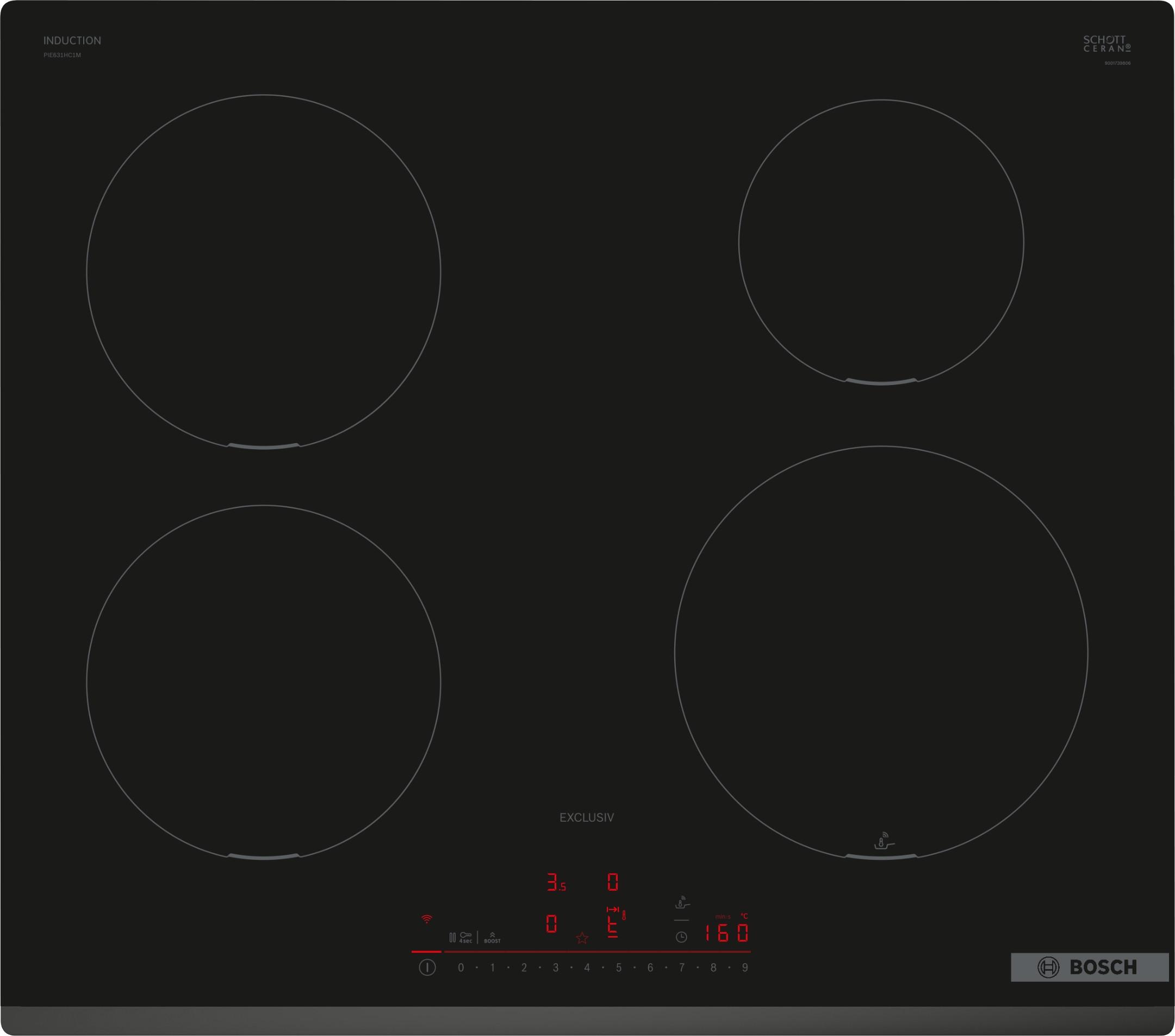 DirectSelect: direkte und einfache Auswahl der gewünschten Kochzone, Leistungsstufe und zusätzlicher Funktionen. - PerfectFry Plus Bratsensor: lässt nichts anbrennen. - Smart Hood Automatic: Die Dunstabzugshaube passt sich während des Kochens automatisch an die Einstellungen deines Kochfeldes an. - Favoriten-Taste: personalisiere dein Kochfeld mit der Hilfe von Home Connect. - Home Connect: Vernetzte Hausgeräte von Bosch für einen leichteren Alltag. - - - - -