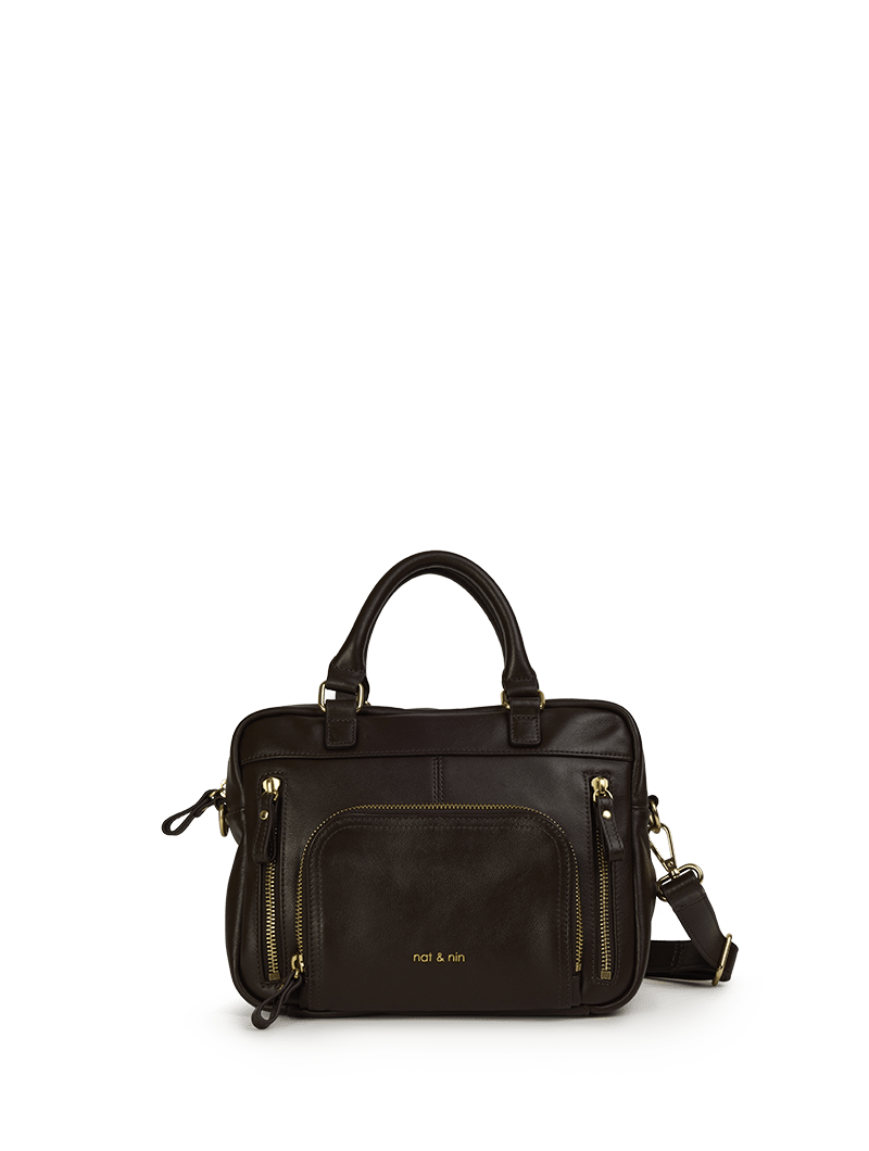 Le Mini Macy est un sac à main chic et raffiné, conçu pour répondre aux besoins de la vie quotidienne. Ce sac en cuir est doté de deux poignées principales et d'une ceinture ajustable pour une utilisation flexible. Ses multiples compartiments, notamment une pochette fermée à fermeture éclair et des poches latérales, offrent un rangement pratique et organisé. Les détails en cuir et les fermoirs dorés ajoutent une touche d'élégance et de durabilité. Le logo de la marque est incisé en lettres fines au centre inférieur de la face avant du sac. Le Mini Macy est parfait pour les occasions professionnelles, les événements ou simplement pour les journées de bureau.