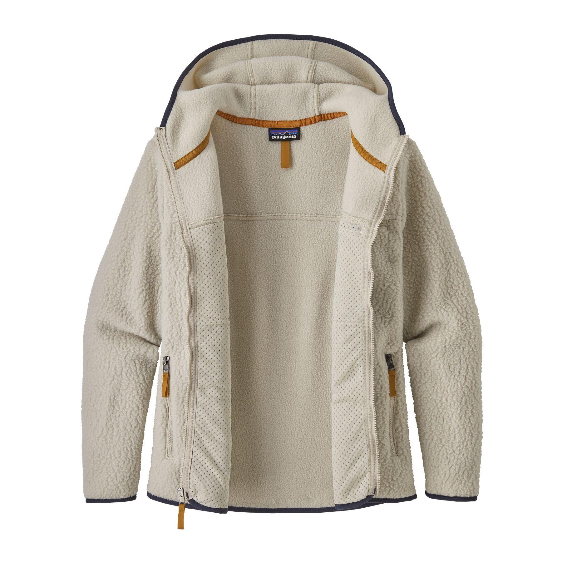 Le W's Retro Pile Hoody de Patagonia est un pull de sport fonctionnel et responsable, conçu pour les activités extérieures et les loisirs. Cette veste en polyester recyclé est dotée d'une doublure polaire pour maintenir la chaleur et le confort. Le design technique de Patagonia garantit une respirabilité et une légèreté optimales, tout en offrant une protection contre les intempéries. Le W's Retro Pile Hoody est équipé de deux poches zippées à la taille, avec des boutons en cuir marron pour une fermeture facile. Le col et les poches sont également dotés de boutons en cuir marron, ajoutant un élément de style et de fonctionnalité. Le logo de la marque Patagonia est visible sur le devant et sur la doublure, tandis que les manches et le bas sont finis avec une bande de tissu sombre, créant un contraste agréable avec la couleur beige clair de la veste. Le W's Retro Pile Hoody est une pièce parfaite pour les entraînements, les activités extérieures et les loisirs, tout en étant une déclaration de style et d'engagement responsable.