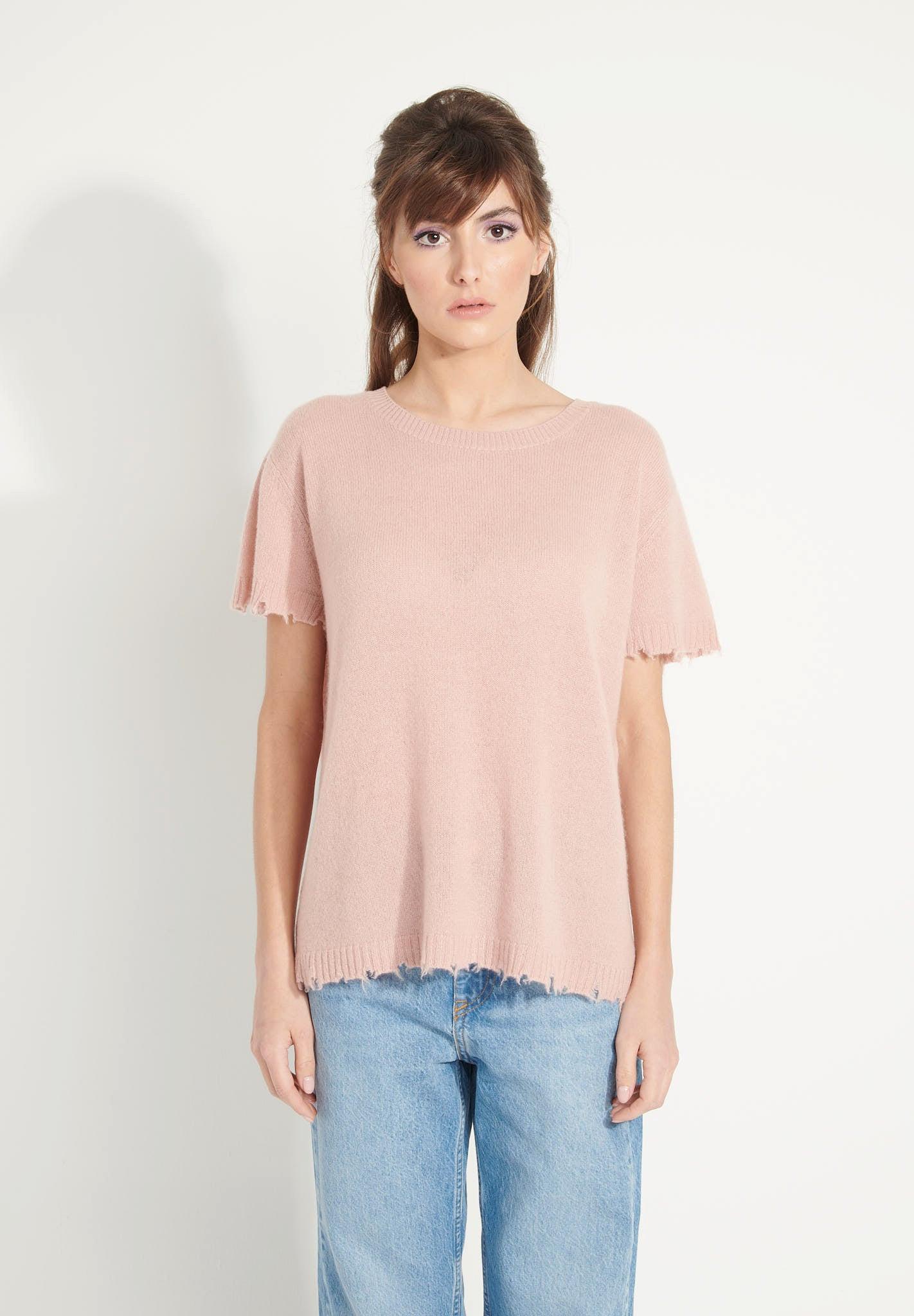 Le T-shirt AVA 6 présente un col rond classique et des manches courtes, offrant un ajout confortable et polyvalent à toute garde-robe. Fabriqué à partir de 100% cachemire, ce tricot déjaugé procure une sensation luxueuse et une apparence raffinée.