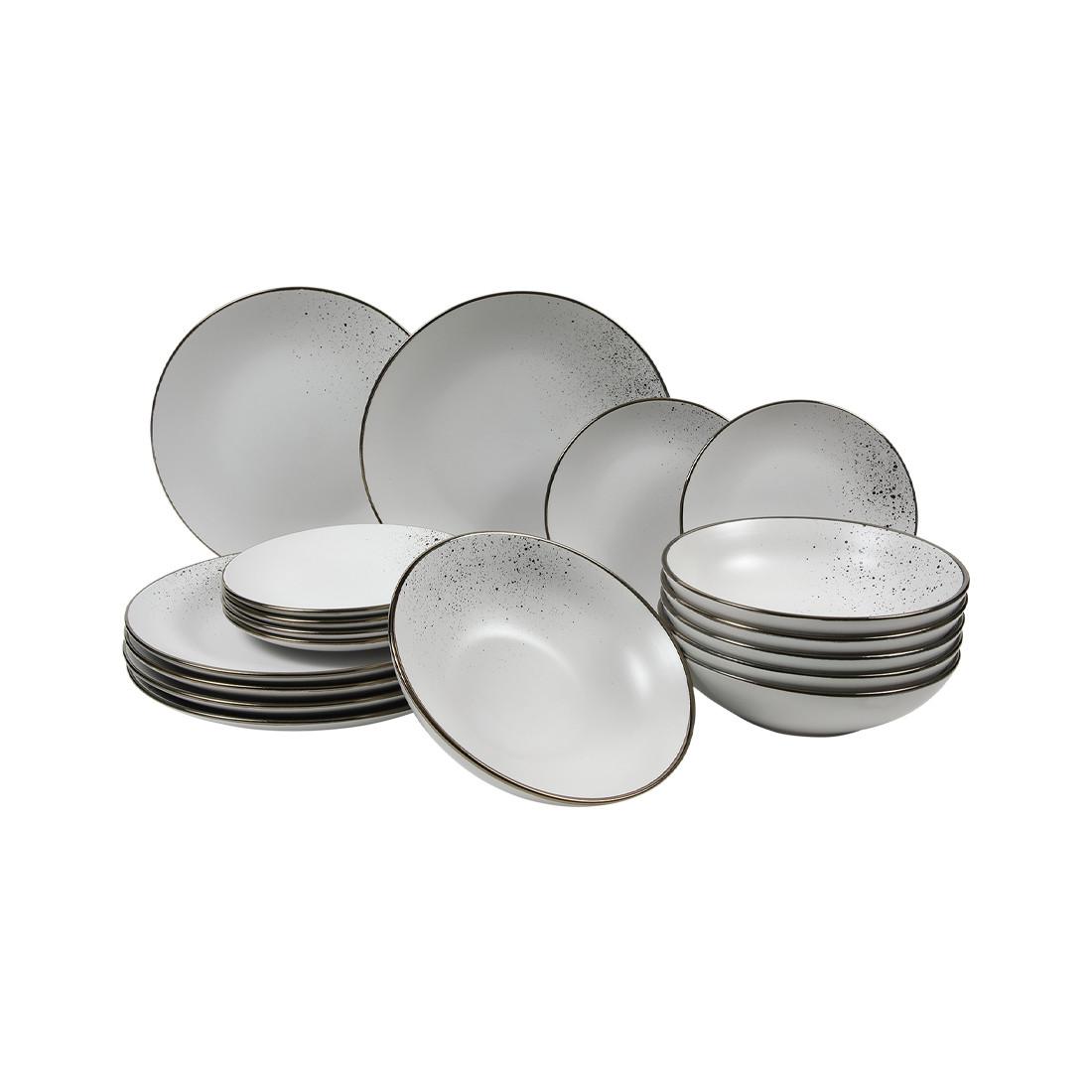 Produktinformation, Umfangreiches 18-teiliges Set für 6 Personen, Aus hochwertiger Keramik, Elegantes Design, Spülmaschinenfest, , Inhalt, 6 x Speiseteller Ø 27 cm, 6 x Frühstücksteller Ø 19 cm, 6 x Suppenteller Ø 20 cm