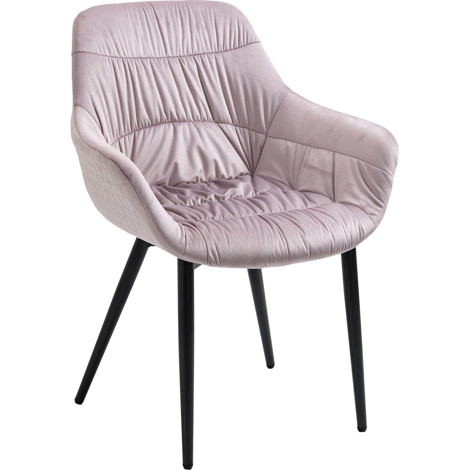 Cette chaise à accoudoirs tendance se distingue par son revêtement en tissu à l'aspect velours et son piètement à 4 pieds en métal laqué époxy noir. Les pieds en métal garantissent non seulement une bonne stabilité, mais s'harmonisent aussi parfaitement avec le revêtement de la chaise. Grâce à la coque d'assise confortable avec accoudoirs, vous bénéficiez d'un confort d'assise exceptionnel. Les surpiqûres transversales sur la partie intérieure de l'assise et du dossier, ainsi que les surpiqûres en nid d'abeille qui ornent la partie extérieure, attireront tous les regards dans votre salon. Grâce à sa forme extravagante, cette chaise rembourrée peut également être utilisée comme chaise de conférence. Quel que soit l'endroit où elle est utilisée, vous et vos invités apprécierez ce confort d'assise.Assise et dossier avec surpiqûres transversales à l'intérieur, piqûres en nid d'abeille à l'extérieur, charge maximale env. 110 KG, hauteur d'assise : env. 46 cm, profondeur d'assise : env. 41 cm, largeur d'assise : env. 41 cm, hauteur des accoudoirs : env. 61 cm.Chaise avec accoudoirs au design modernerevêtement avec piqûre transversale à l'intérieur et piqûre en nid d'abeille à l'extérieurrevêtement attrayant en velours rosele piètement à 4 pieds en métal noir assure la stabilitésurface très facile d'entretien et résistante à l'usurePieds en métal noir revêtu par poudre
