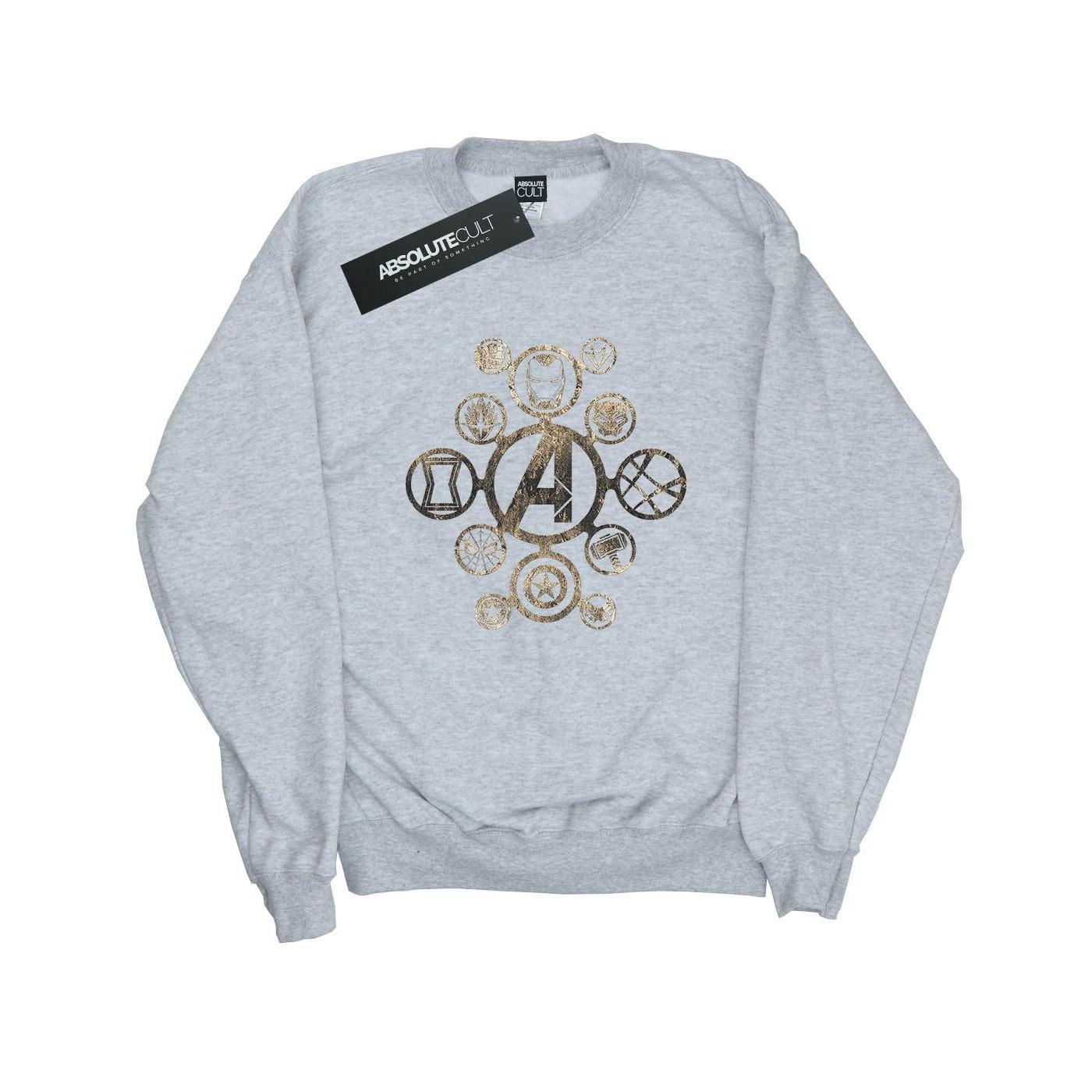 Ce sweat-shirt présente un imprimé graphique saisissant, ce qui en fait une pièce remarquable pour les fans. Le design met en valeur le logo emblématique des Avengers 'A' en son centre, entouré de divers symboles représentant les personnages adorés de l'univers Marvel. L'imprimé a un effet or métallique vieilli, ajoutant une touche vintage et premium au vêtement.