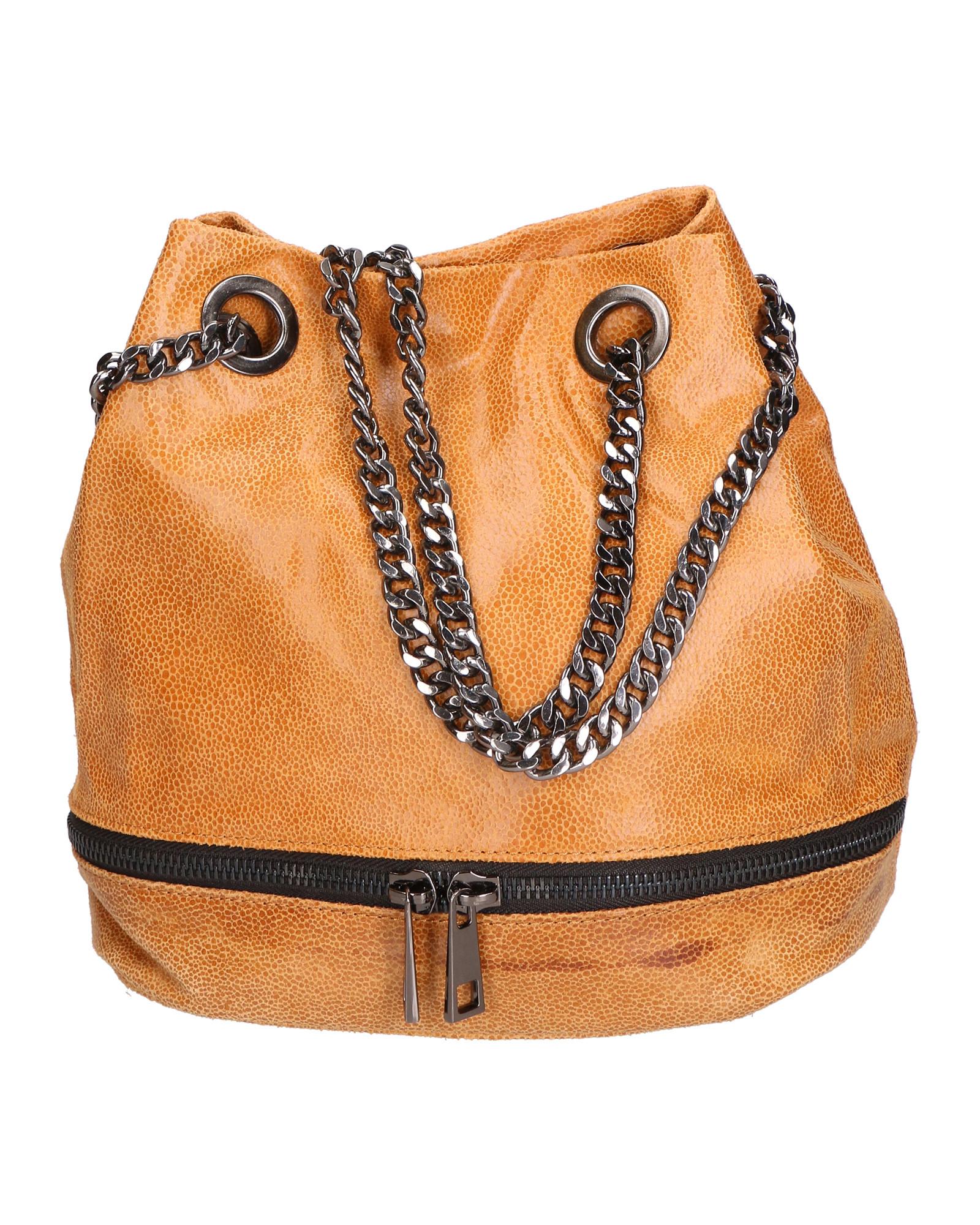 Sac seau en cuir cartonné avec chaîne. Fabriqué en Italie.