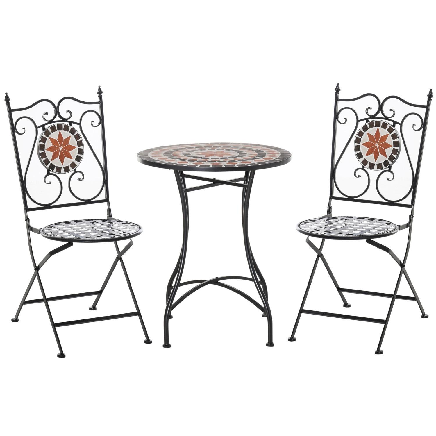 Northio, Salon De Jardin Salon De Balcon Pour 2 Personnes Table Mosaïque 2 Chaises Pliables Métal Multicolore