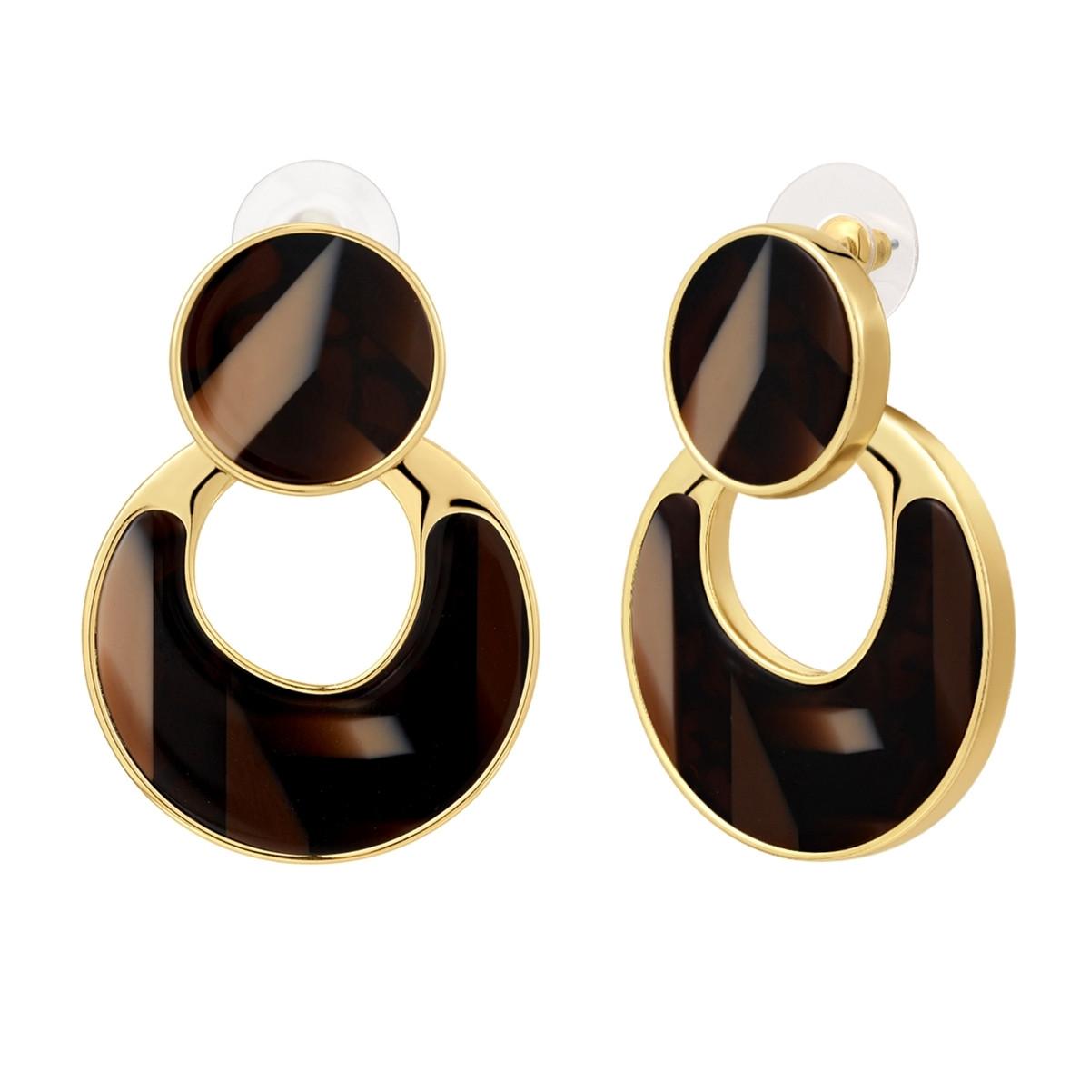 Un incontournable pour toutes les fashionistas : des accessoires aux designs saisissants que tout le monde n'a pas et qui rehaussent facilement n'importe quelle tenue, du jean décontracté à la robe de fête. Ces clous d'oreilles de la jeune marque tendance YOKOAMii sont heureux de faire leur grande apparition : l'accent est mis sur le contraste entre le métal doré jaune chaud et chatoyant et les incrustations en plastique sombre. Le langage du design repose également sur l'opulence : attirer l'attention est à l'ordre du jour. Une fermeture enfichable pratique facilite l'enfilage et le retrait. Si vous aimez laisser la discrétion aux autres, vous allez adorer ce bijou.