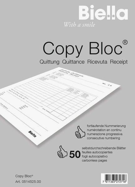 Biella BIELLA Quittung COPY-BLOC D/F/I/E A5 514525.00 selbstdurchschreib. 50x2 Blatt