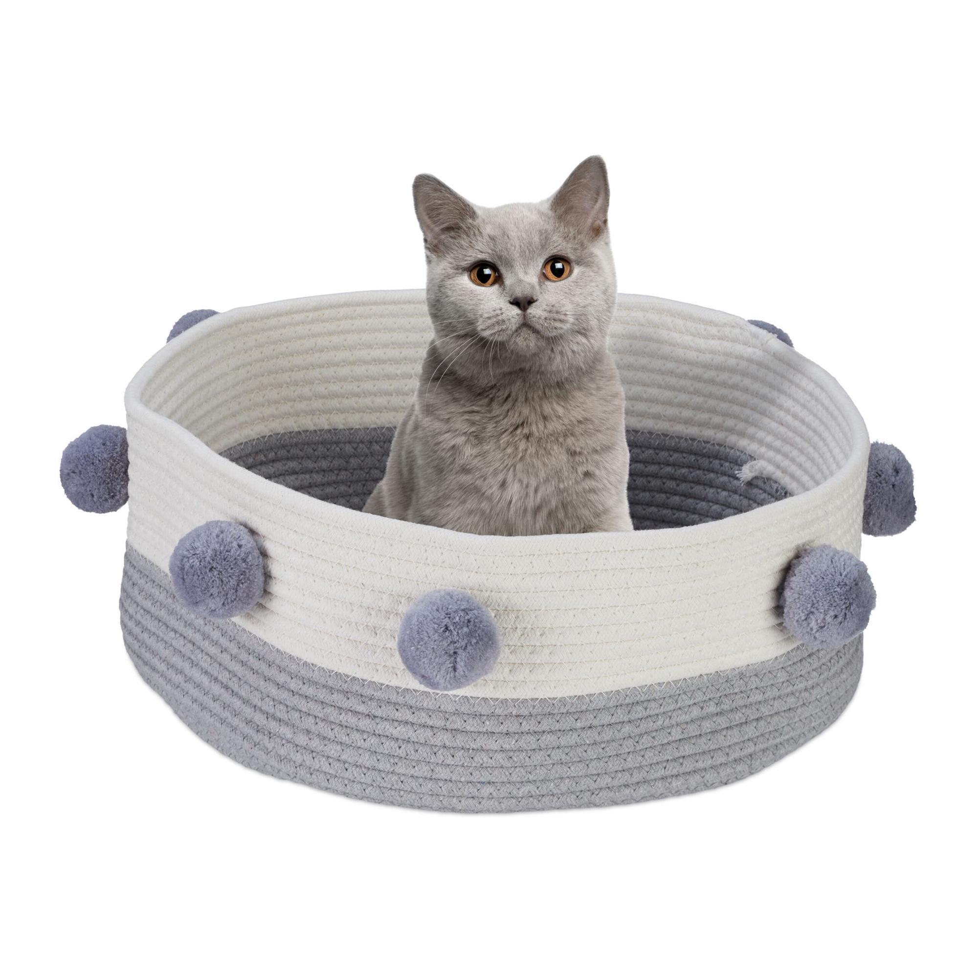 Ce panier pour chat en coton tissé offre un espace de repos confortable et sécurisé à votre compagnon félin. Son design rond, orné de pompons décoratifs, invite à une utilisation immédiate, tandis que son bord haut procure un sentiment de sécurité et d'isolement.
