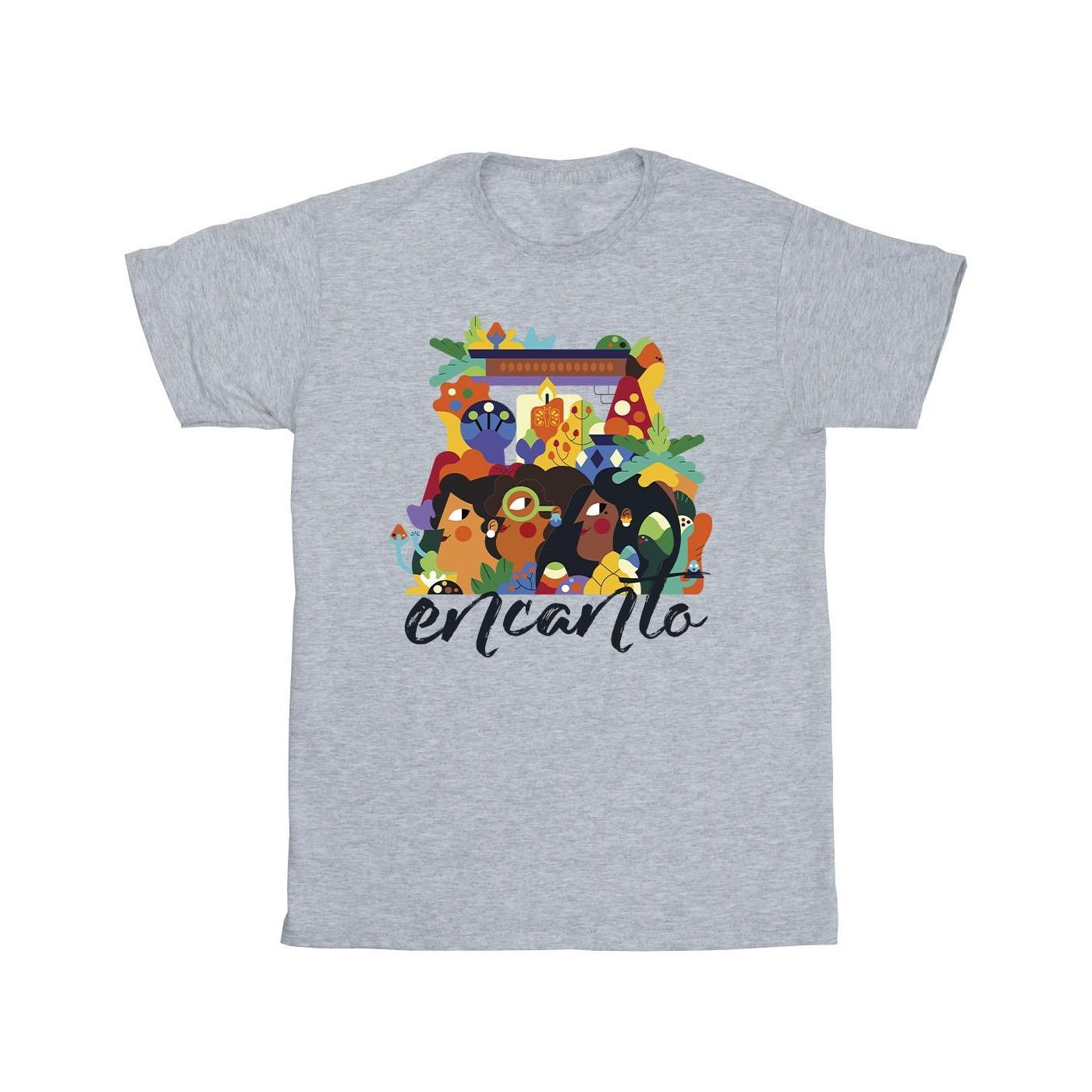 Ce T-shirt présente un imprimé graphique vibrant inspiré d'Encanto, ce qui en fait un ajout amusant et coloré à toute garde-robe décontractée. Le design met en valeur divers éléments et personnages de l'histoire bien-aimée, rendus dans un style ludique et artistique.
