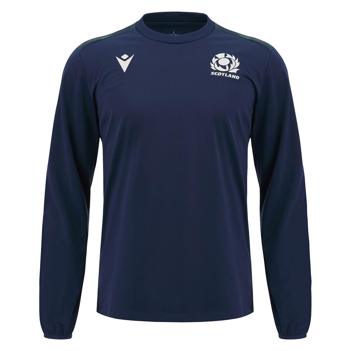 Montrez votre soutien à l'équipe d'Ecosse cette saison, à la salle de sport et au-delà, avec ce sweat-shirt d'entraînement bleu marine pour hommes 2023/24 de Macron.