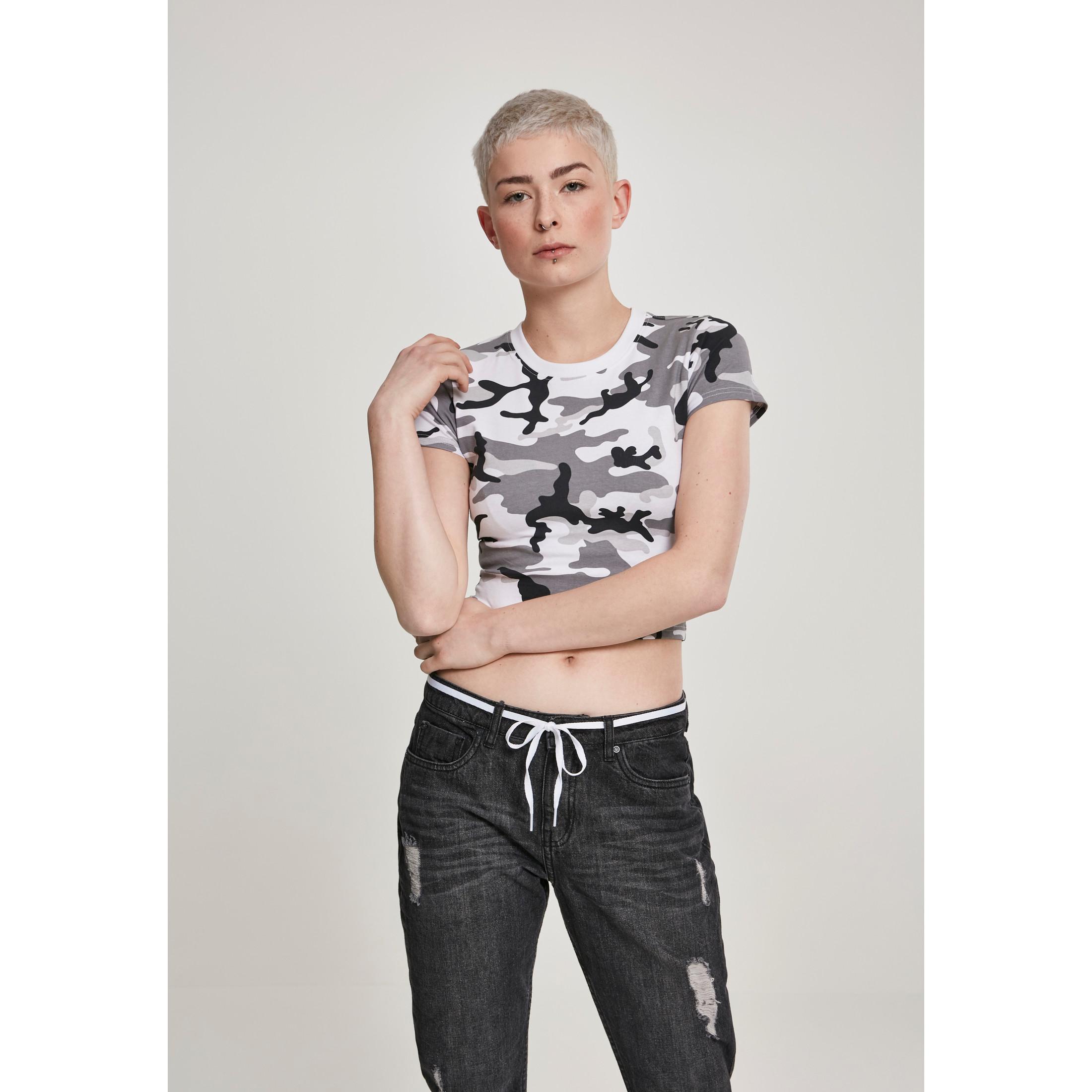 Ce t-shirt court est une version moderne d'un classique, doté d'un mélange de coton confortable et d'un col rond. La coupe ajustée et le motif camouflage tendance en font un véritable créateur de tendances pour celles qui recherchent un style distinctif.