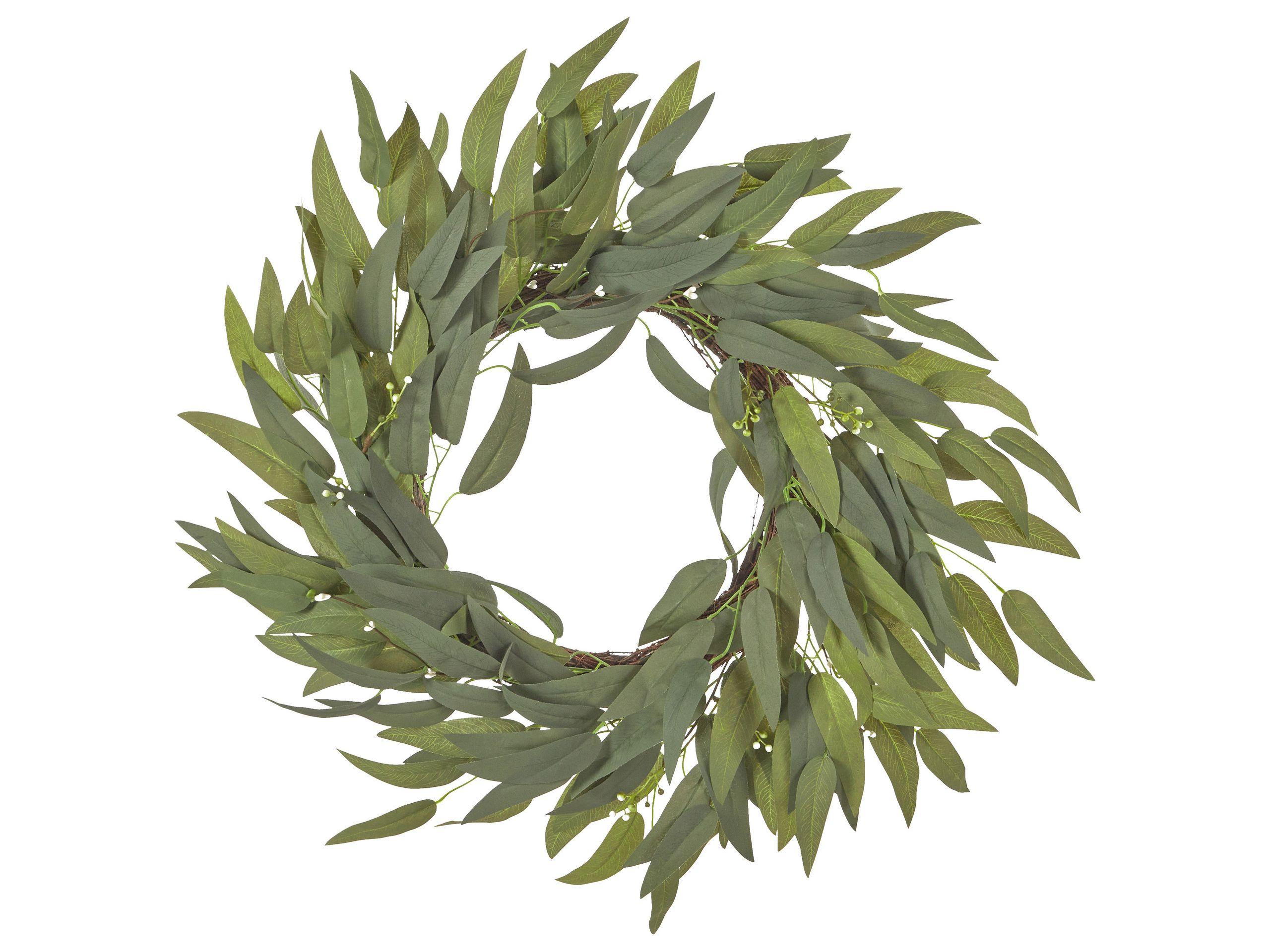 Couronne de fleurs artificielles. Apportez la nature à votre porte avec cette couronne simple mais charmante. Ses feuilles d'un vert tendre apportent une touche de calme et de couleur à votre porte d'entrée ou à votre vestibule. Parfaite pour toutes les saisons, c'est une belle façon d'accueillir les invités dans votre maison.