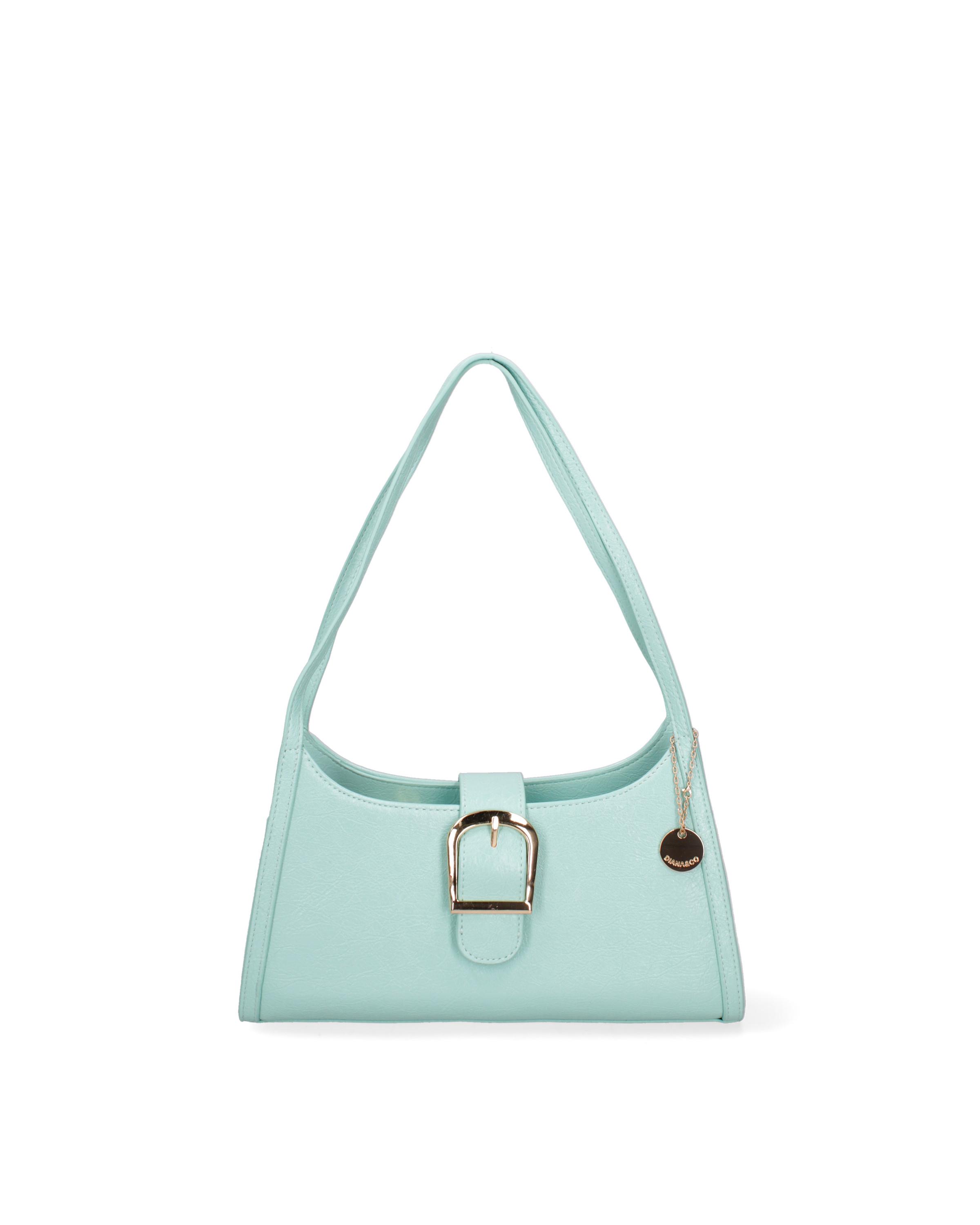 Sac à bandoulière pour femme. La fermeture se fait avec un bouton magnétique. Les poches intérieures sont une avec fermeture éclair et une ouverte. Les poches extérieures sont absentes. La bandoulière est manquante. Le manche est en résine. Il y a un compartiment interne. Le matériau extérieur est du cuir écologique. À l'intérieur, il est doublé de polyester. Dimensions : 30x40x10 cm. Produit de mode