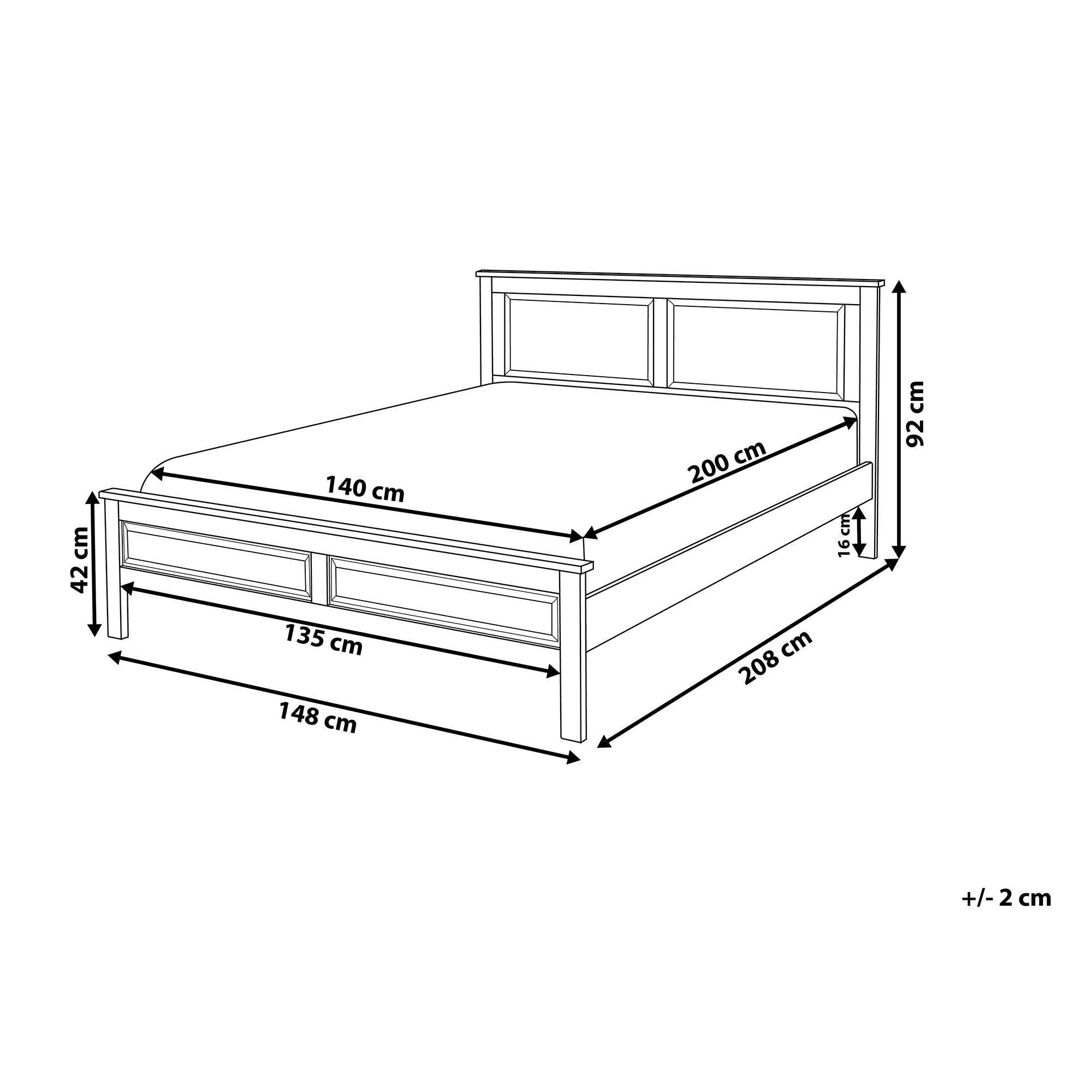 Dimensions de lappuie-tête:</b> 149x50<br> <b>Largeur:</b> 148 cm<br> <b>Longueur:</b> 208 cm<br> <b>Hauteur:</b> 92 cm<br> <b>Surface de couchage:</b> 140x200 cm<br> <b>Poids:</b> 34 kg<br> <b>Charge admise:</b> 200 kg<br> <br><b>Loffre inclue: 1 x Cadre de lit, 1 x Sommier (30 lattes enroulables), Non inclus : matelas et parure de lit