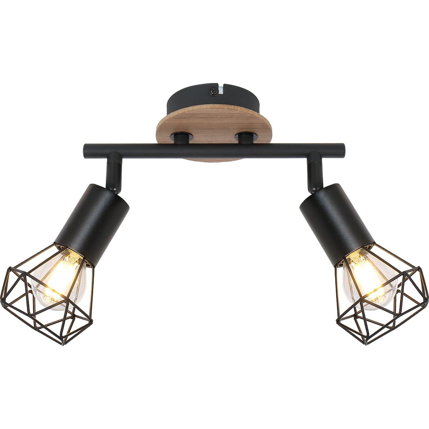 Spot métal noir, bois marron, métal noir, LxlxH : 220x100x180mm, sauf 2x E14 40W 230V.