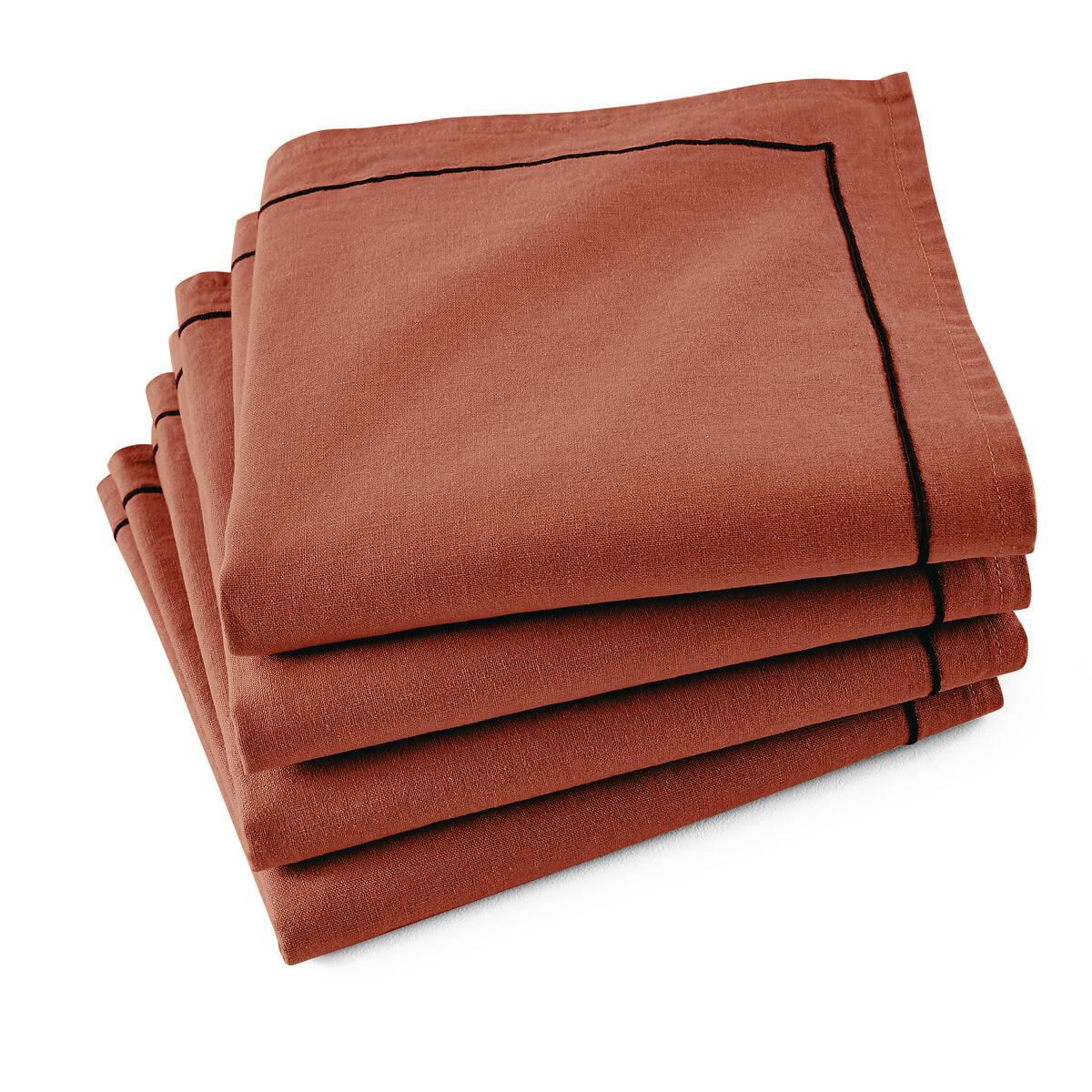 Les 4 serviettes de table Bourdon : élégance et raffinement d'une toile coton lin ornée dune finition bourdon brodé, pour une table chic et stylée à la fois.