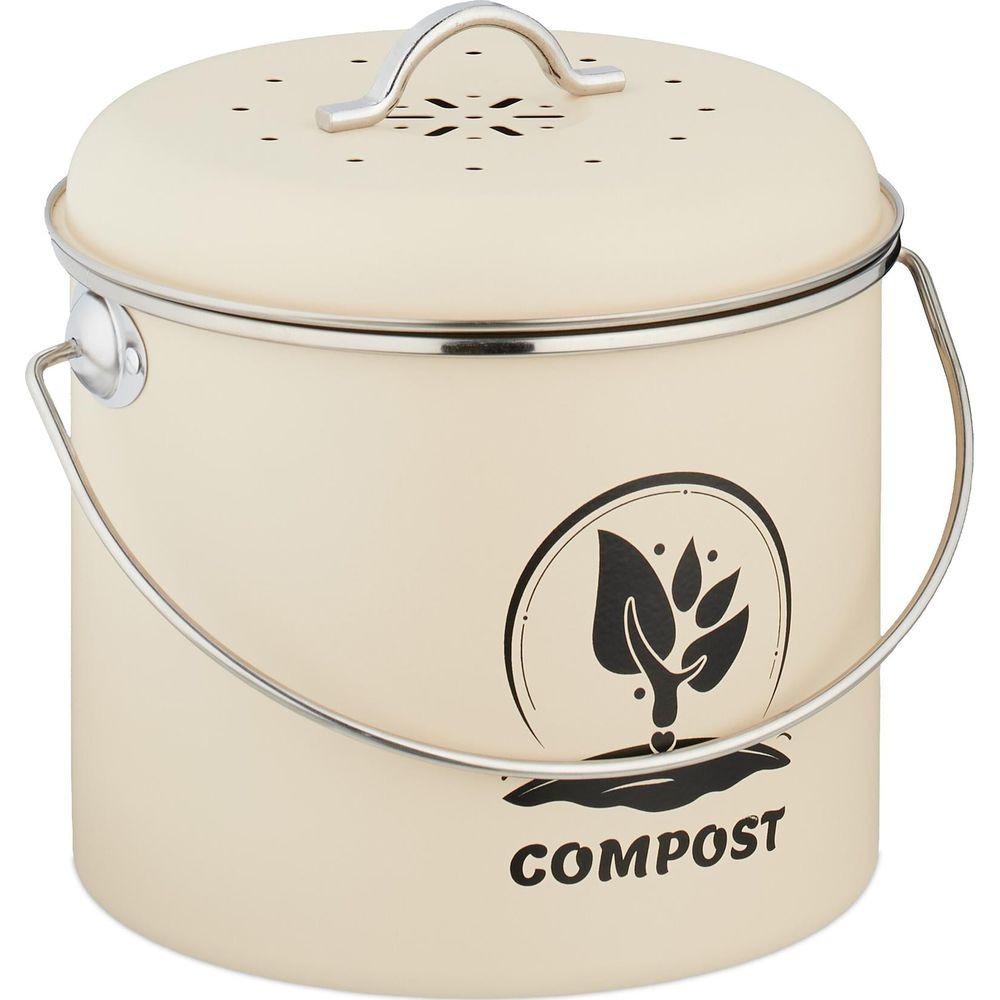 Capacité : 3,5 l, Hauteur : 20 cm, Nombre de conteneurs : 1, Couleur détaillée : Argent, Crème, Forme : Ronde, Matériau : Charbon naturel, FerSeau bio avec couvercle pour collecter les déchets de cuisine, tels que les épluchures de légumes, les coquilles dœufs, etc.Poubelle en fer – Dimensions HxLxP : environ 20 x 22 x 19 cmPoubelle comprenant 2 filtres à charbon actif pour neutraliser les odeurs désagréablesConteneur à déchets organiques rond avec inscription « Compost » - Poignée avec prise facilitant le transportSeau à compost pour plan de travail ou sous-placard – Vidage facile et nettoyage rapideContenu de la livraison :1x conteneur à déchets organiques2x filtres à charbon actif