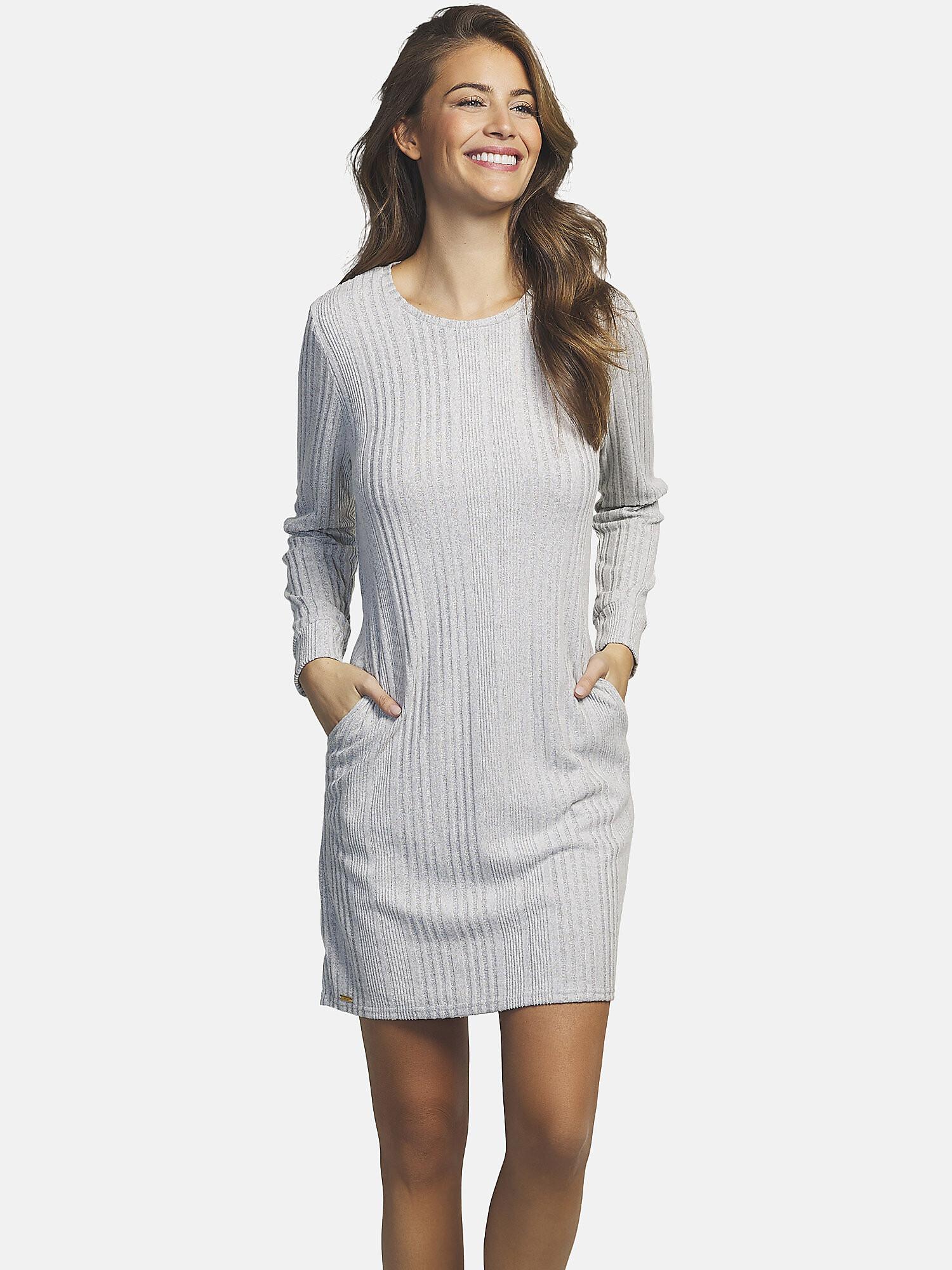 Cette chemise de nuit de coupe classique de la collection Basica est confectionnée dans un tissu confortable texturé de fines rayures sur toute la surface. Elle est dotée de manches longues resserrées aux poignets, d'un col rond et de poches latérales pratiques. Elle assure un sommeil doux et confortable.