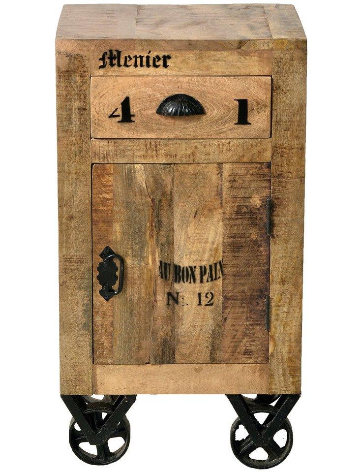 Les meubles en bois de manguier ont une longue tradition en Inde. Après tout, il s'agit d'une plante cultivée qui produit environ 15 millions de tonnes ( !!!) de fruits par an rien qu'en Inde. En raison de sa densité élevée, ce bois est aussi bien adapté à la fabrication de meubles que le hêtre, le chêne ou le teck. Dans la série "Vintage Natural Wood", des menuisiers de la province du Rajasthan utilisent justement ce bois pour créer une série primitive avec une touche antique. Le thème du "design d'usine" est également présent ici, car les ferrures et les roulettes forgées à la main sont considérées comme une réminiscence de l'époque de la révolution industrielle.